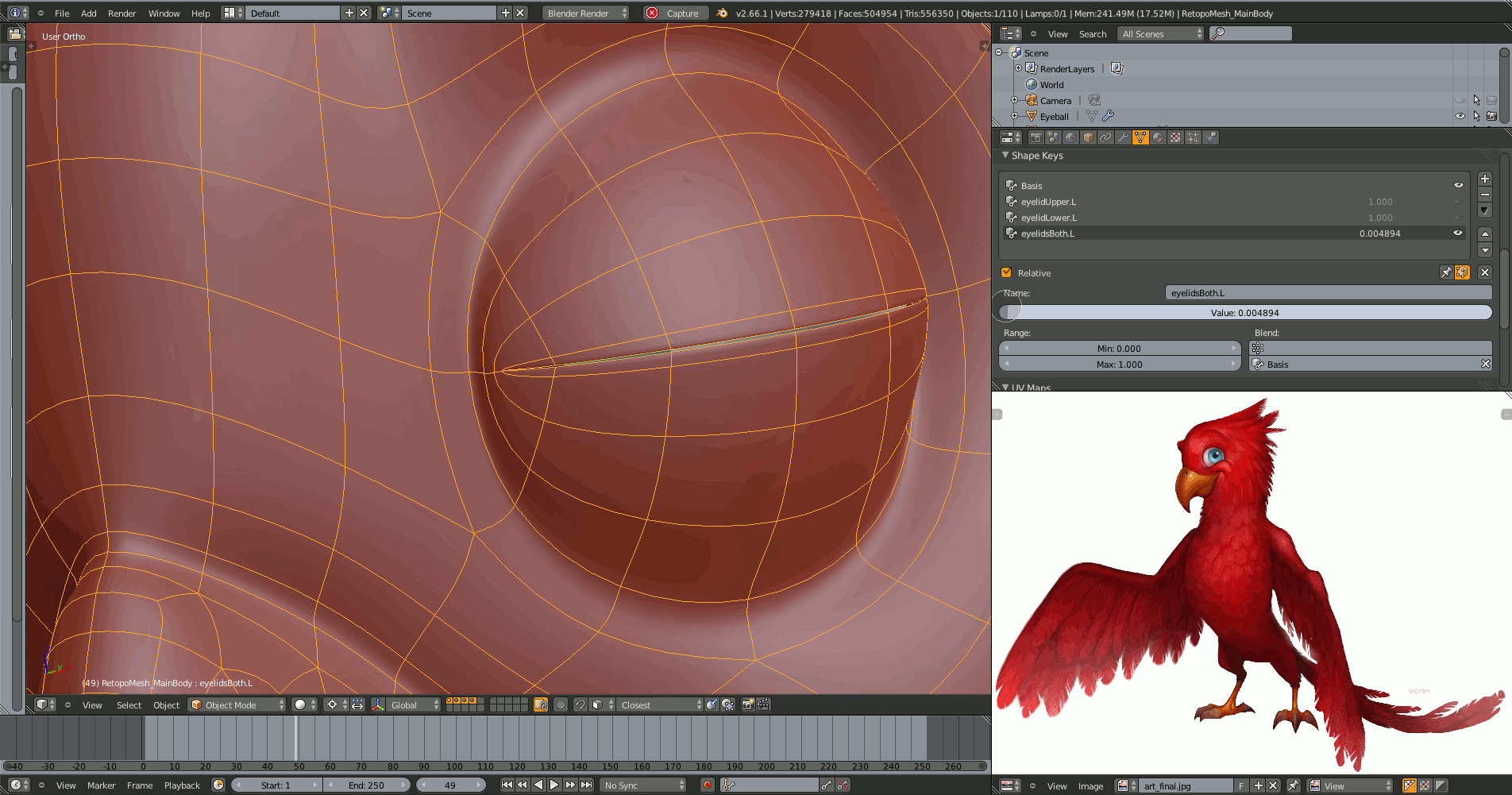 The eyelid shapekeys are really tricky. No wonder that three quarters of this lesson deal with them.