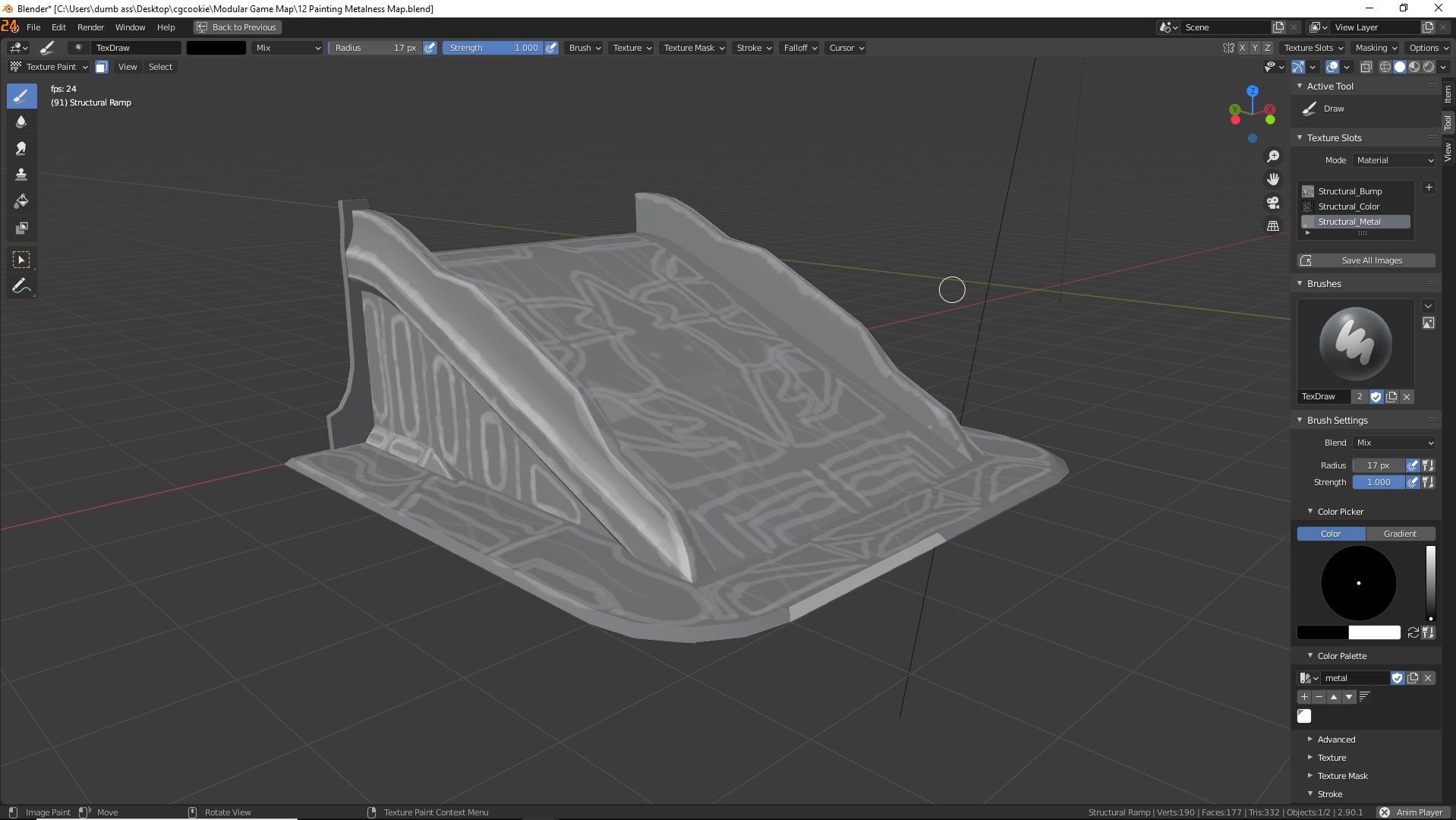 Specifically at the 04:17 [4 minute 17 second] mark of the video where you disable shadeless, using the GLSL preview to paint metalness while being able to see the bump map. Also recently changed to Blender 2.9.