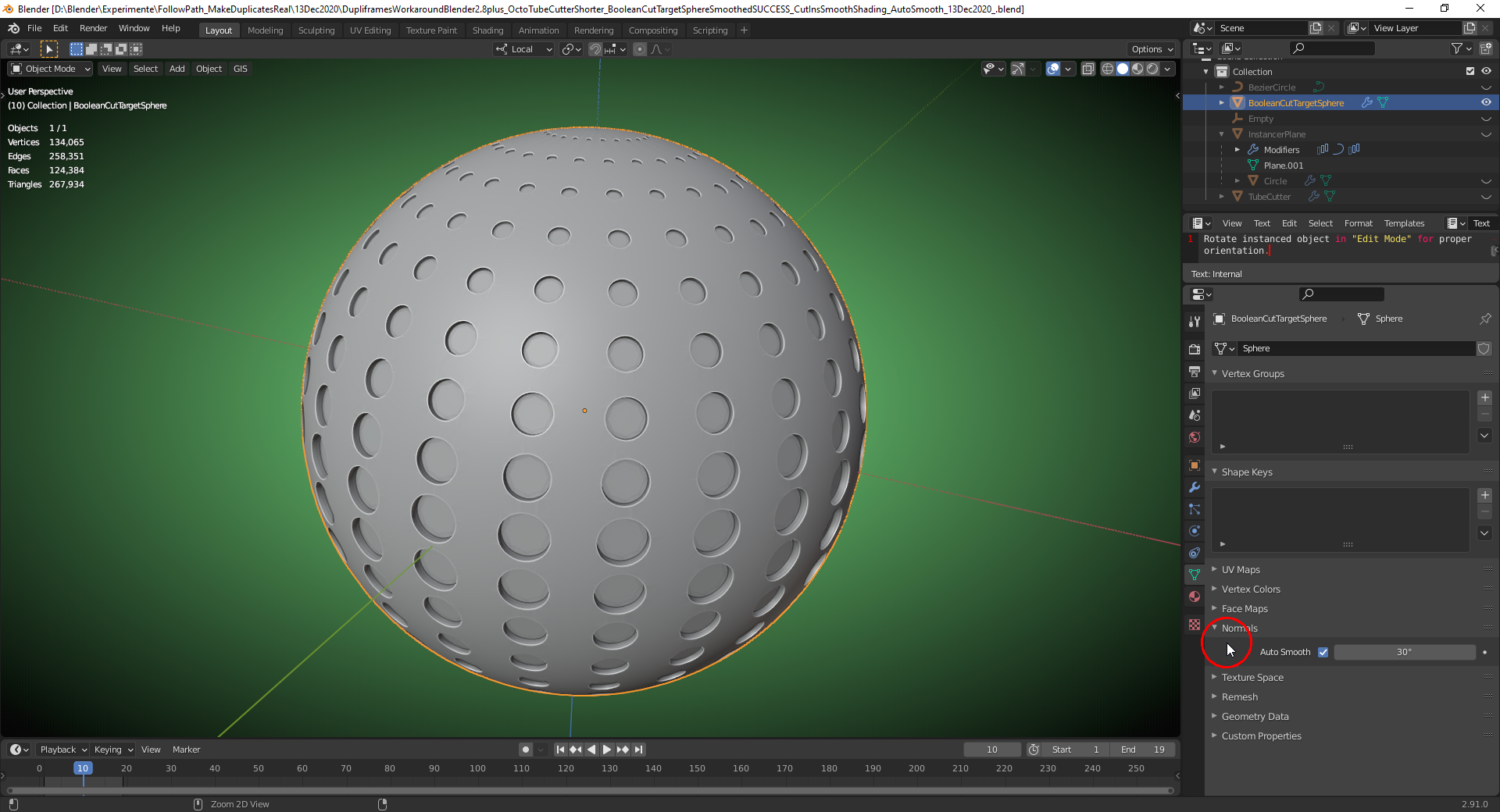 And with the "Target Sphere" smoothed ("Subsurf Modifier"):