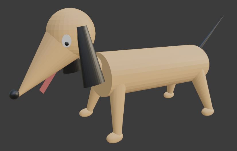 Here is one little dog I made from the mesh primitive modeling challenge in the course Fundamentals of 3D Mesh Modeling in Blender.