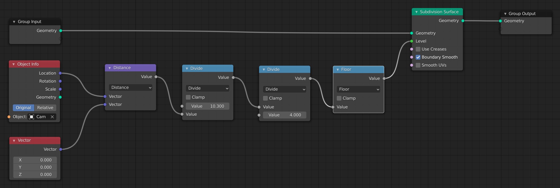 1) Please confirm my understanding of the end goal: As you zoom in closer the subdivisions increase on the Ico Sphere (wunderbar!).