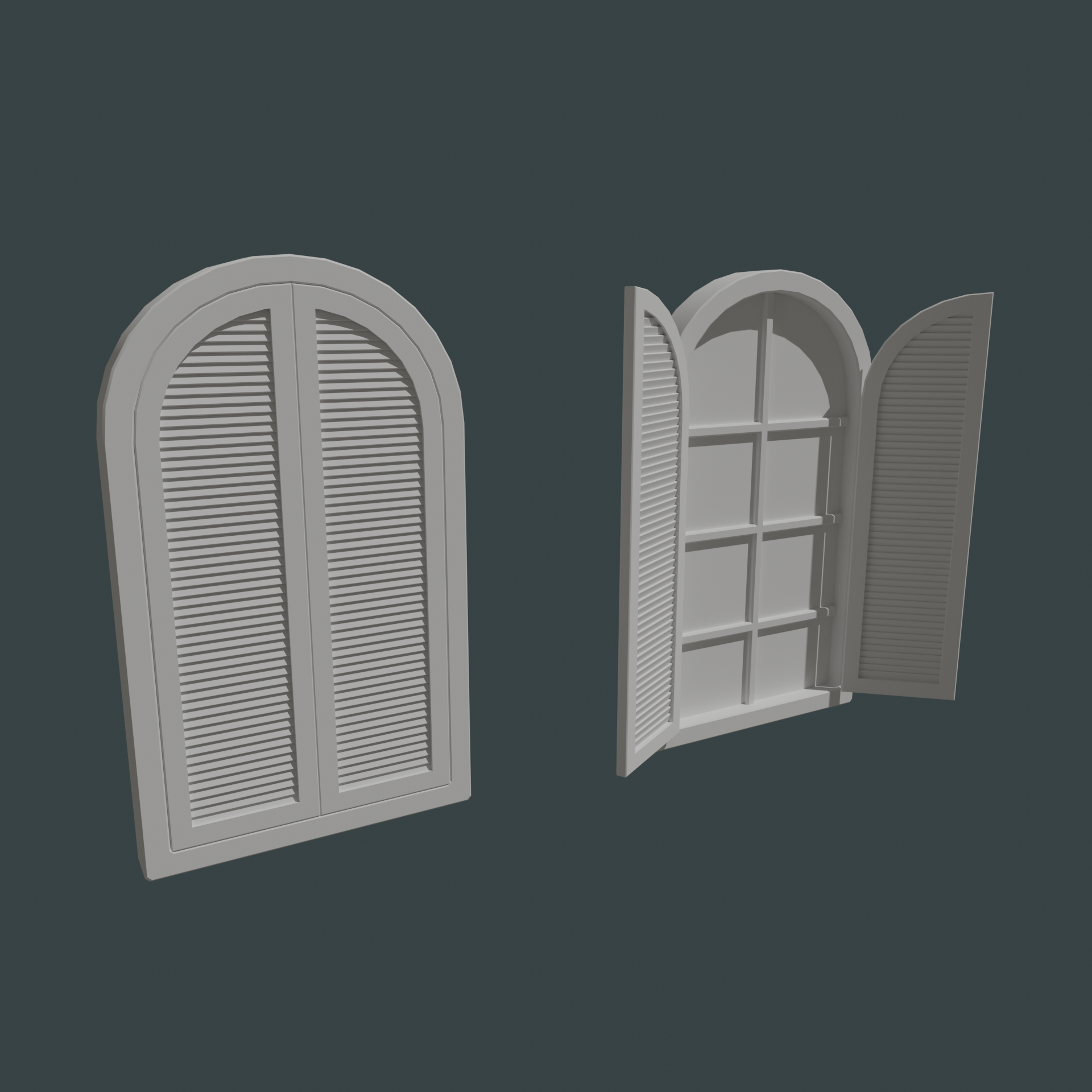 Completed the Window A + Shutters. Open to feedback! I started with the shutters being more like shades/blinds, but looking back at the art it almost feel like the shutters are just flat slats to completely block light with no angle to them.