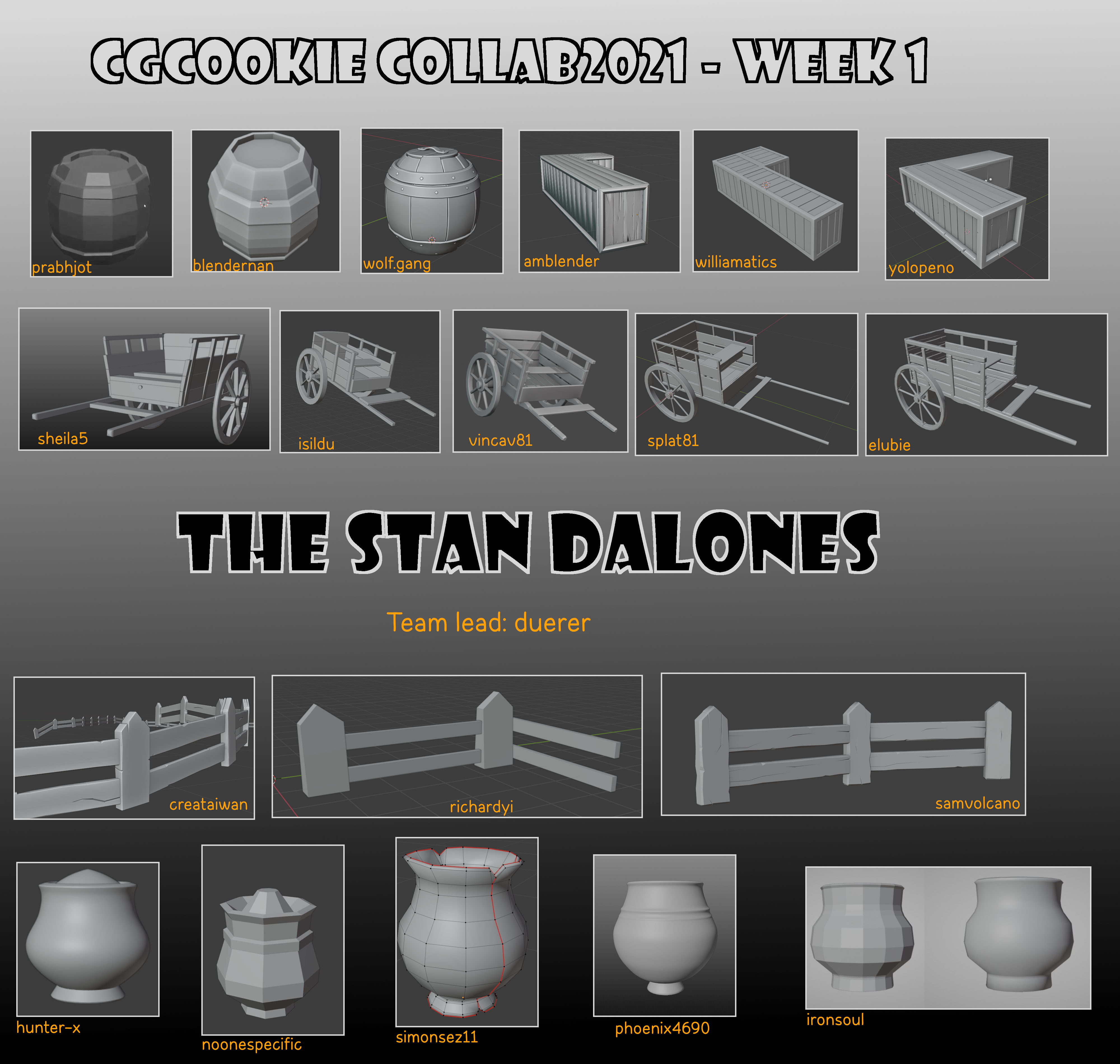 Very nice! It's cool to see the different interpretations from people working on the same asset without having to tab between multiple different WIP threads.