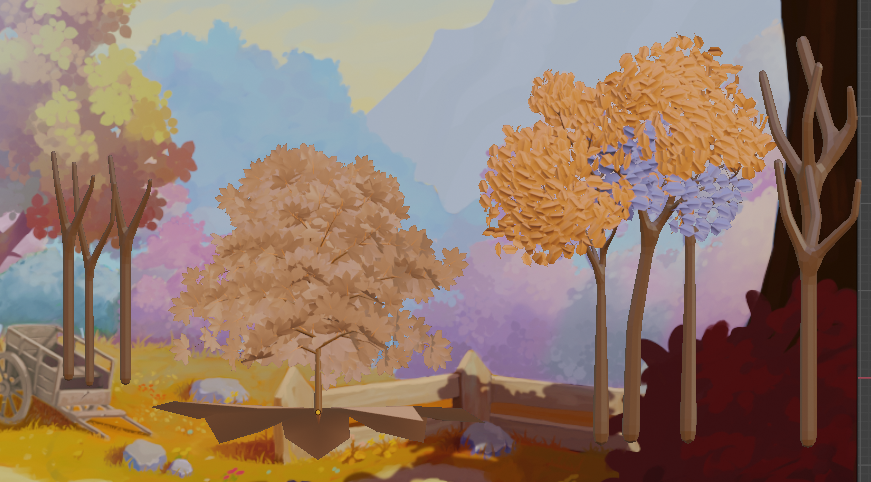Let me know if I should put together a slightly different shader or shaders for the trees on the left. The "lower" grouping of them are all red. The upper grouping is sort of a washed out blue/grey/green.