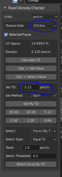 I said "I want a 1024px texture and set up my 1.5m beam as a 512px density."the result is interesting as it gaves me insight to the logic behind the tool. the Set TD value is useful to tell your meshes how much space you want them to take, taking in accound the final size of your texture and how much relative space you want them to take. So, a little bit of math and here we are.