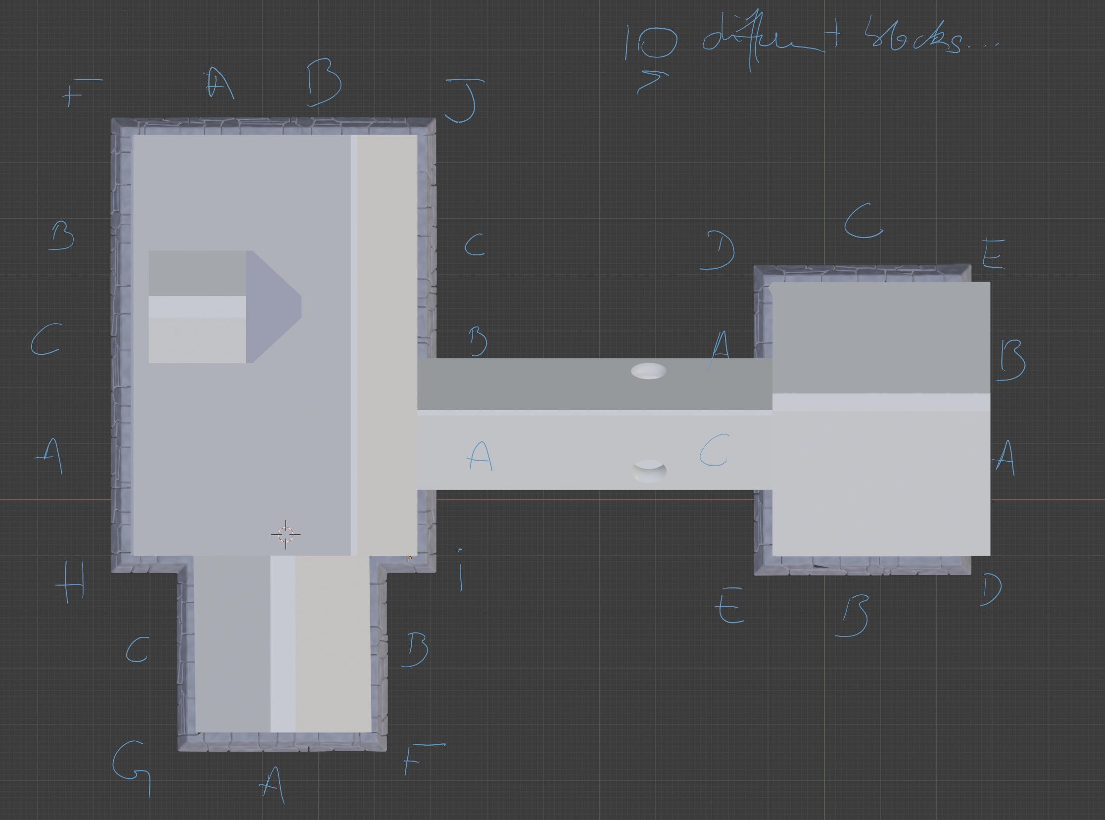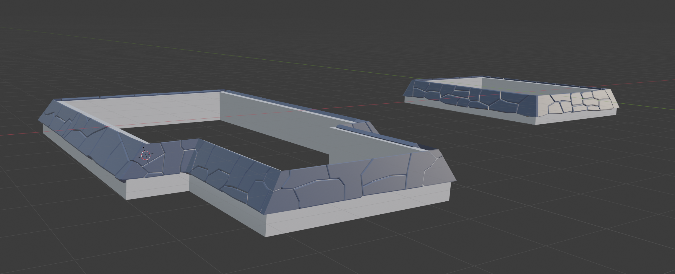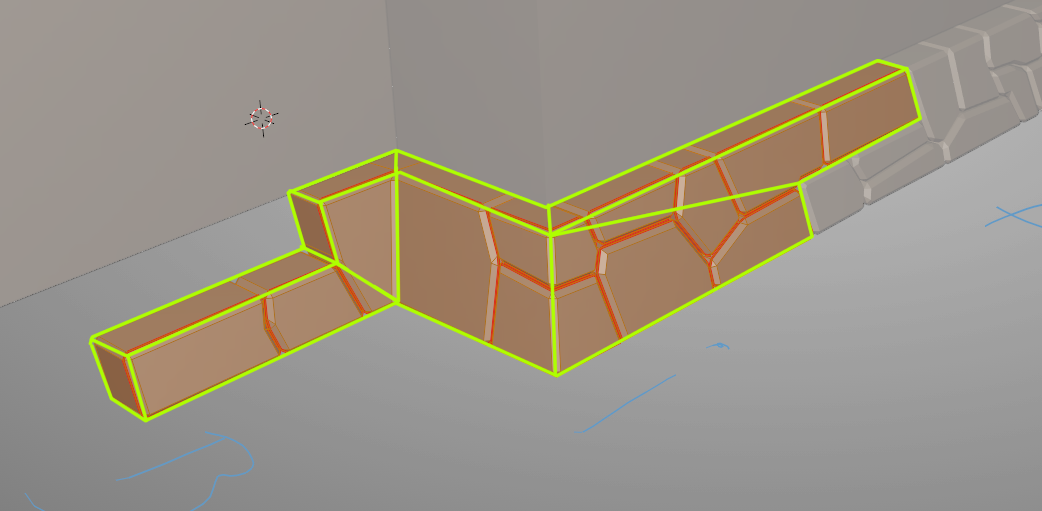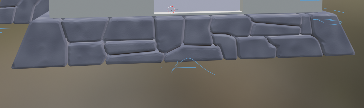 So what I'm thinking about, in order to still reduce the amount of work and the complexity of the final model, is to stick with sculpted stones, but have 1-2 large linear sections that I'll reuse (maybe flipped), plus corners to bind those together. I'll try to bake all the parts onto a single texture though.