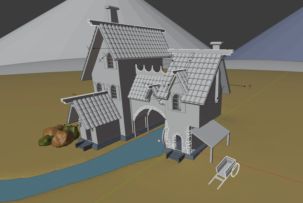 Next I checked with the help of @theluthier 's house blockout whether the position made sense in 3D, which ended not llooking too far off. I guess some final size adjustment will probably be needed once the final breakdown file is available, but at least the proportions should be close enough.