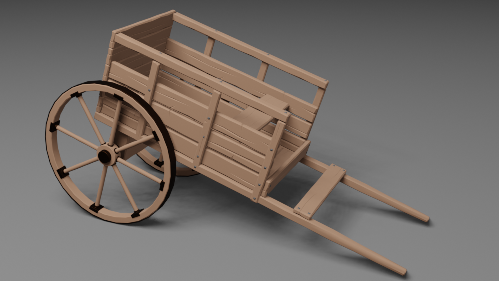 All right, thanks, @theluthier. Let's make the submission official then - I also have some updates on the model, where I did some detailing (both to check whether I am matching the artistic style and to potentially guide me with sculpting next week). Not so sure about the metal details on the wheels, but wanted to try adding some other material than wood for a bit of variety and get feedback on that.