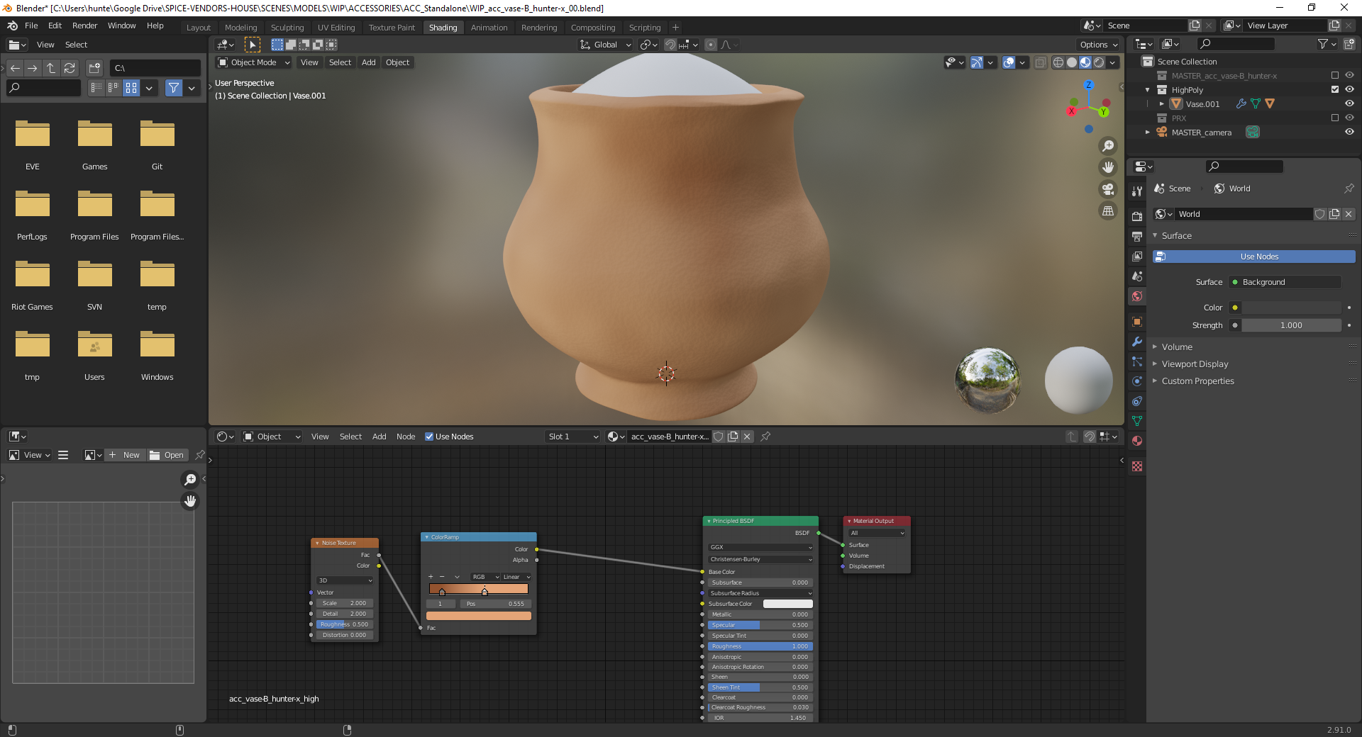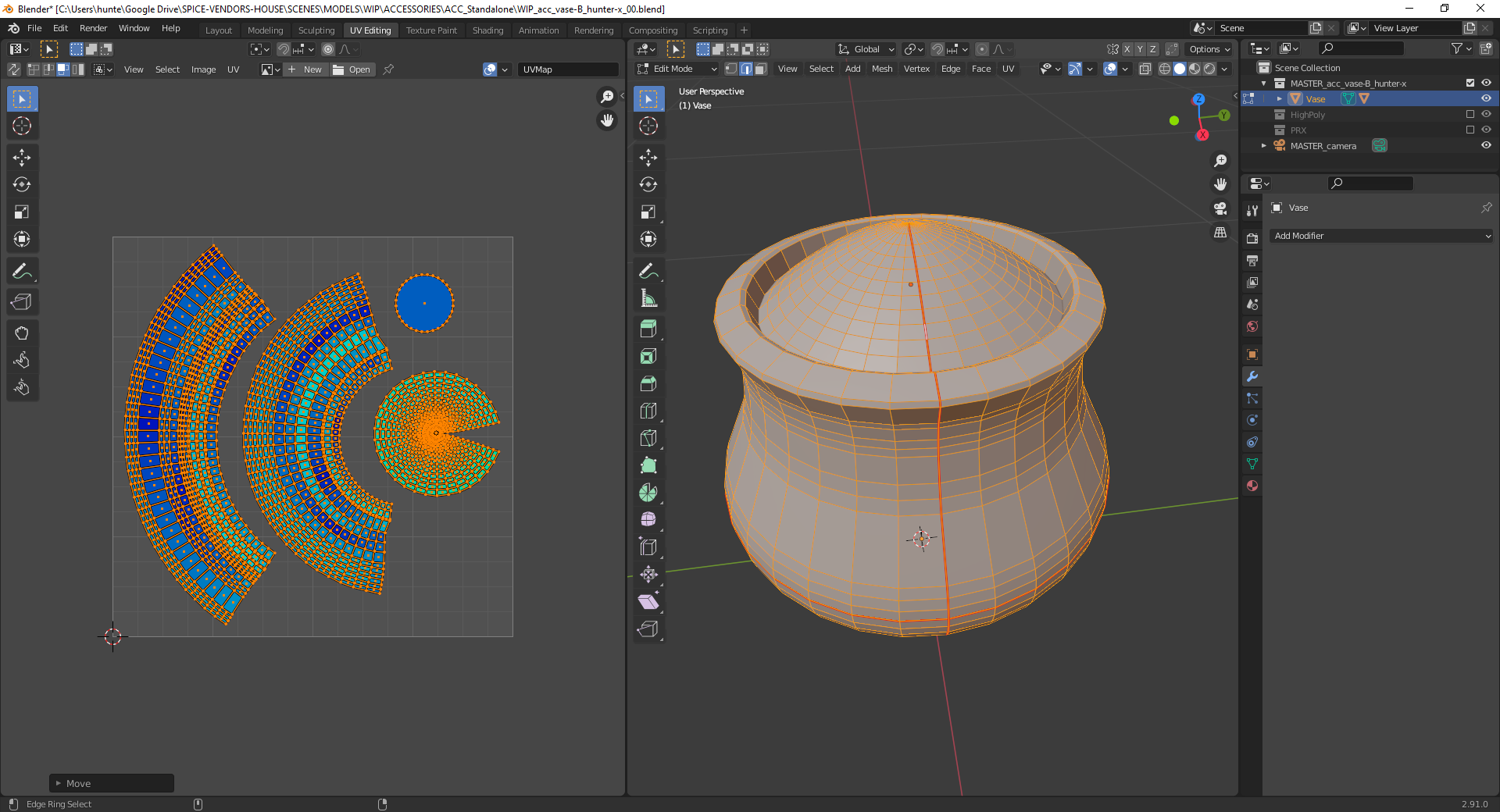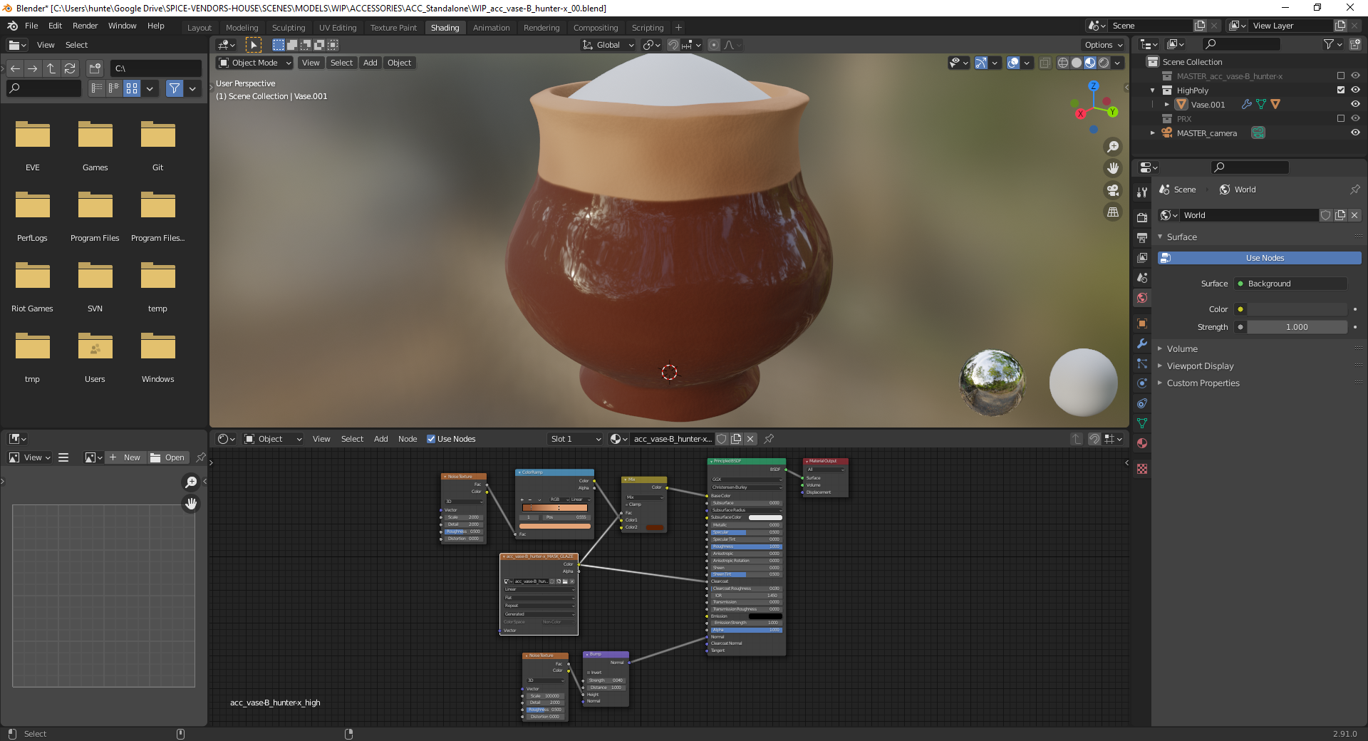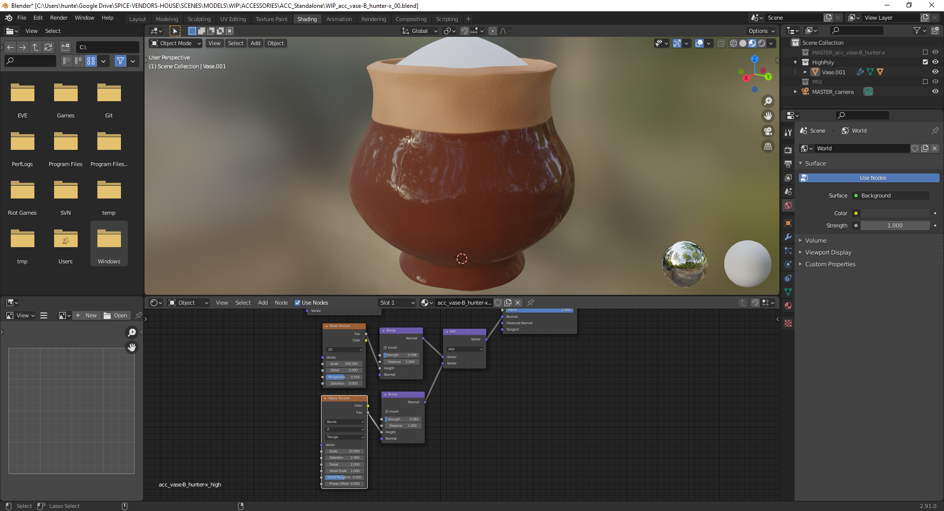 I'll probably combine elements of your version and mine for my personal renders (and stick them in a third WIP file on the Drive for anyone who wants them). Would it be better for me to start from WIP_acc_vase-B_hunter-x_01.blend or MASTER_acc_vase-B_hunter-x.blend in the event that you want to bring anything from that version into the scene model?