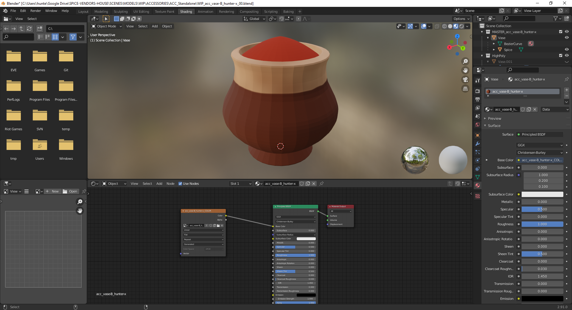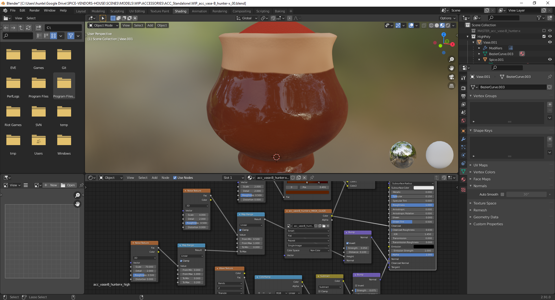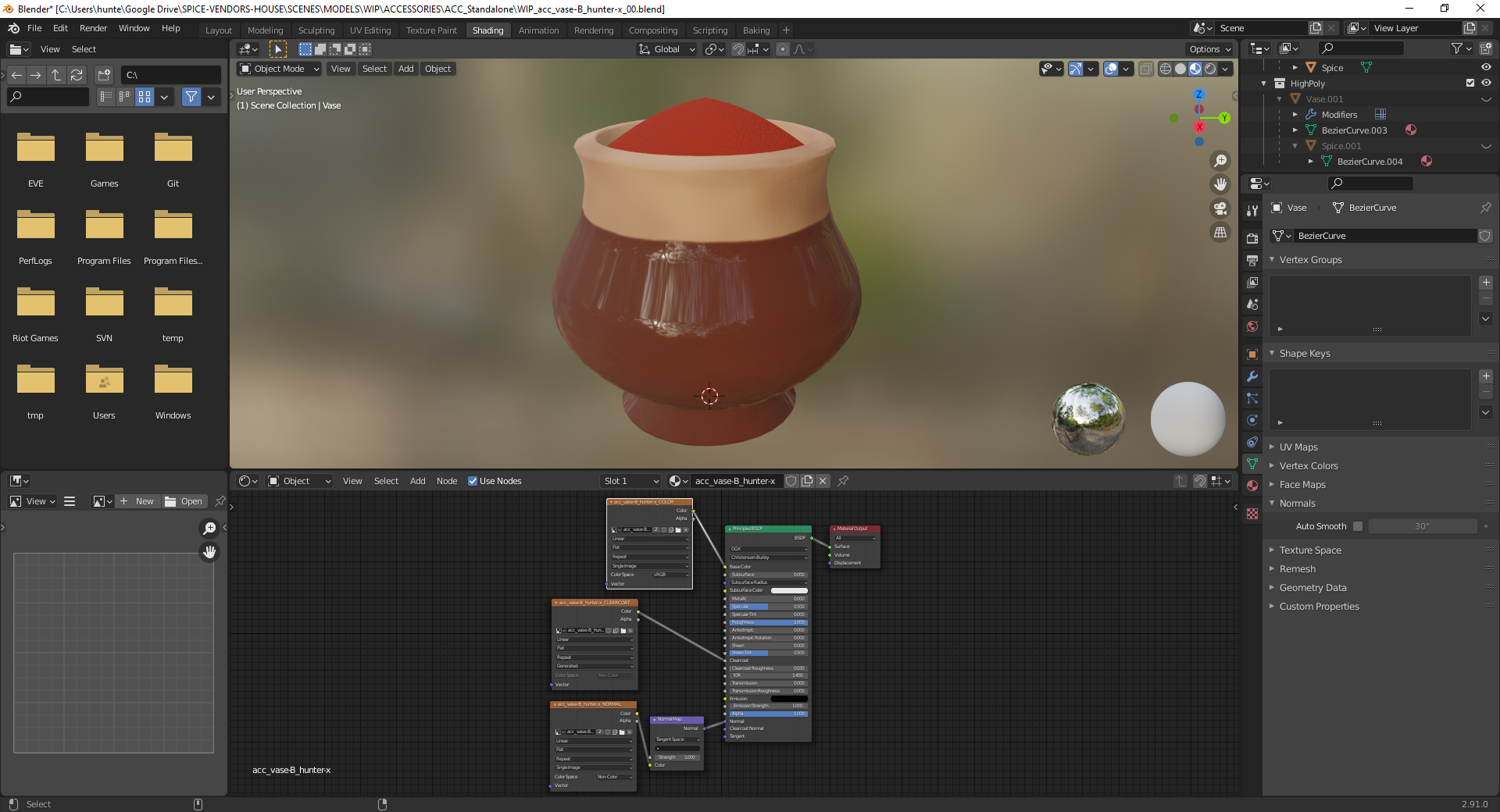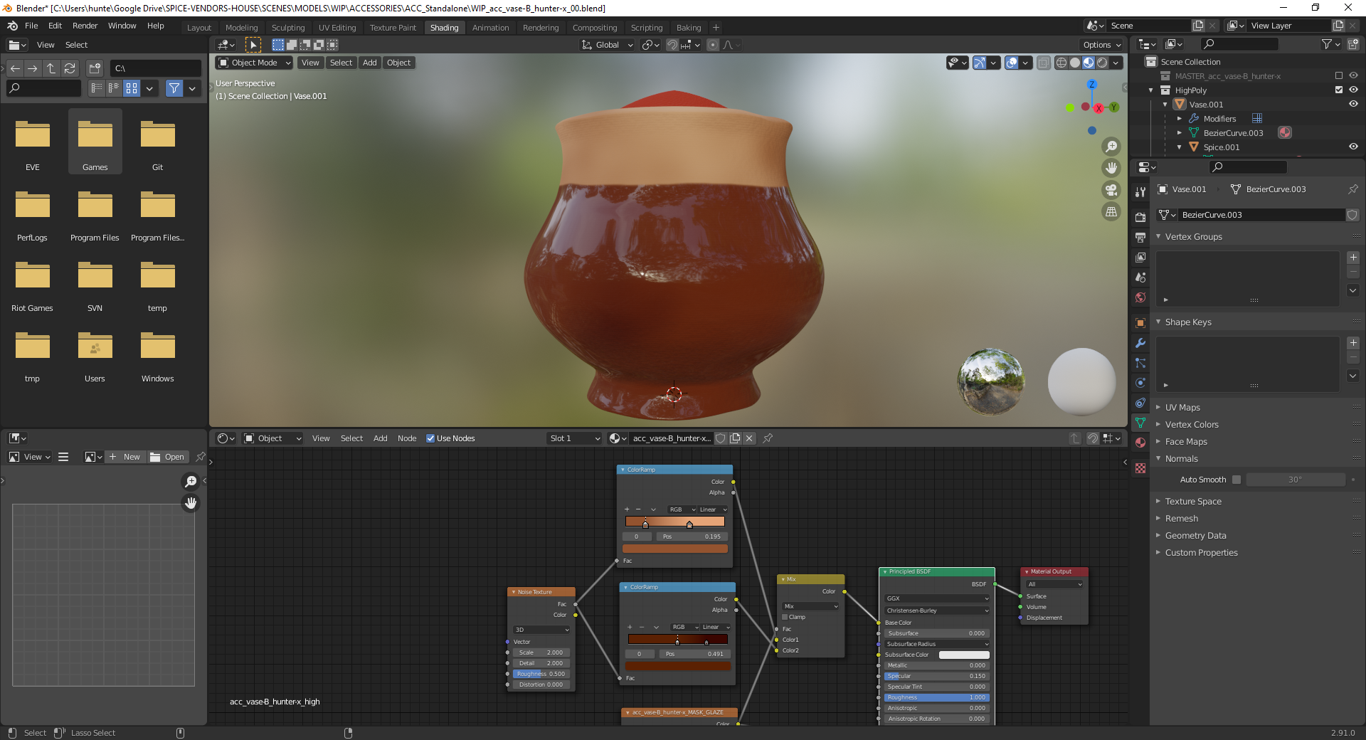 I'll probably combine elements of your version and mine for my personal renders (and stick them in a third WIP file on the Drive for anyone who wants them). Would it be better for me to start from WIP_acc_vase-B_hunter-x_01.blend or MASTER_acc_vase-B_hunter-x.blend in the event that you want to bring anything from that version into the scene model?