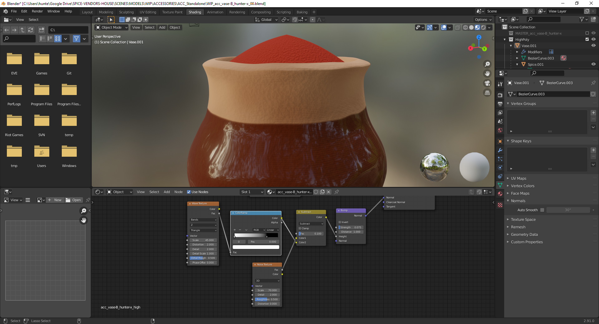 Expanding on the Noise texture bump map shader from last week's submission, I added some variation to the colour of the vase to make it less uniform.