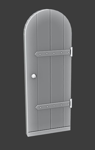 Here is my attempt to add details to the door. I also matched the dimensions to the proxy and got rid of the hinges, which are not seen in the concept art.