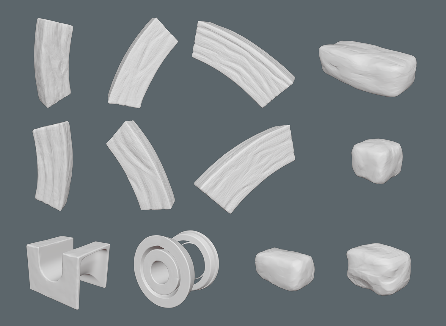 I plan on doing a second pass on all of the sculpts to add cracks and other details, but given the quantity of things that needed to be sculpted, I figured it would be better to get everything reasonable before going back to finalize them.