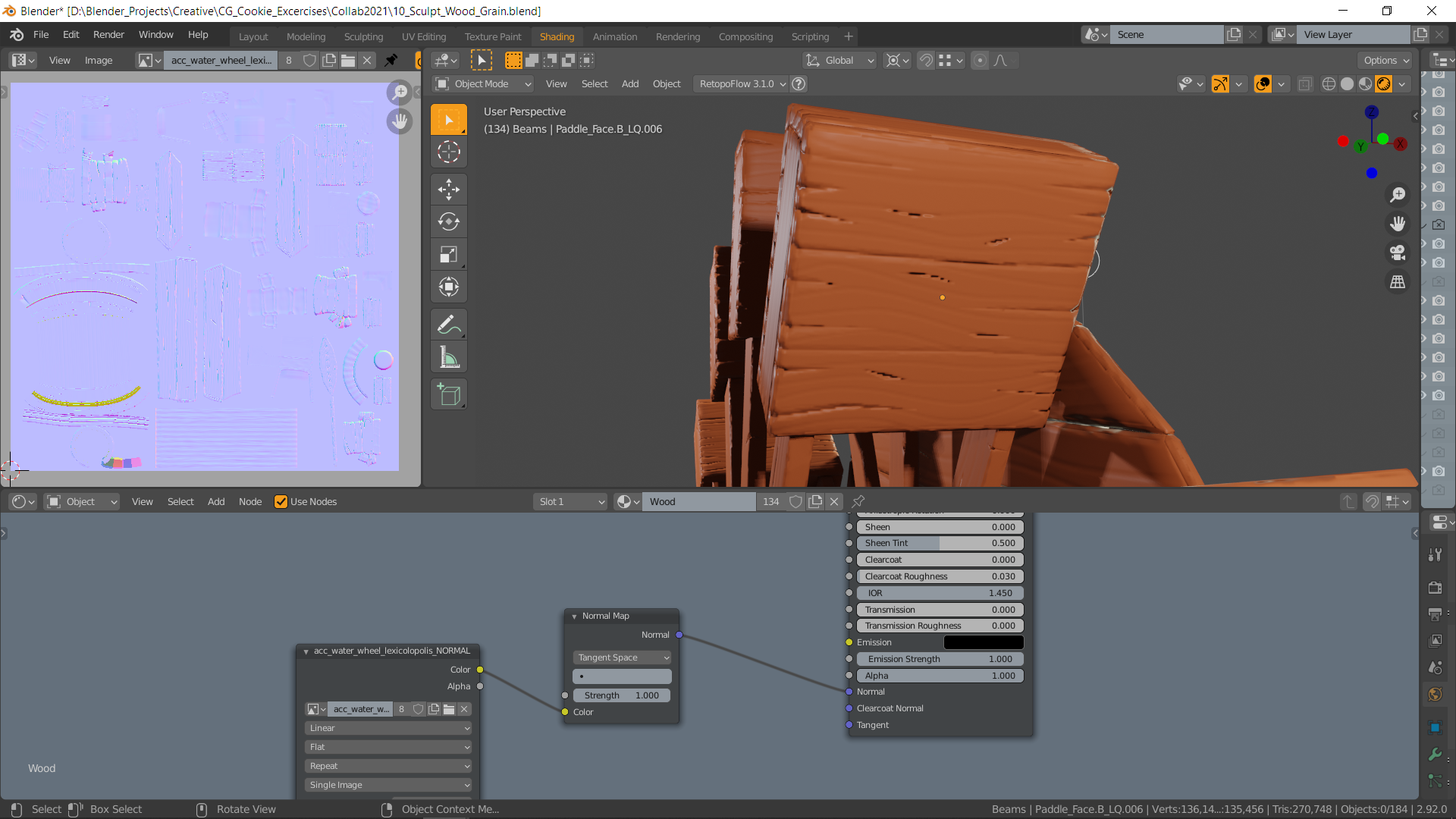 There's a number of things in my model that have slowly become a mess. I had intended to use some nails, bolts, and brackets in places, but the way i busted the wood up in sculpting makes them not work anymore. I could maybe save myself by retopologizing the sculpted pieces combined with the extra hardware, and bake onto that.