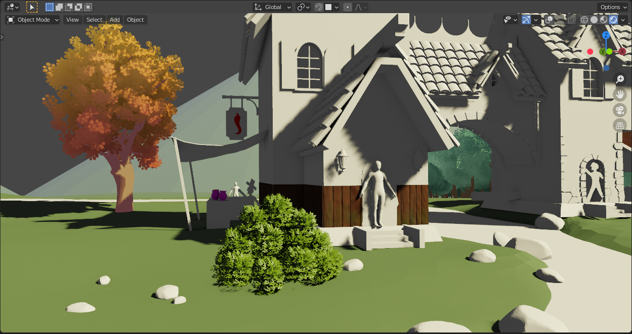 Not only am I super happy as to how its turning out, using GN to distribute the alpha leaves card results in a triangle count of 2! (The 2 extra triangles in the stats above are for the floor plane)