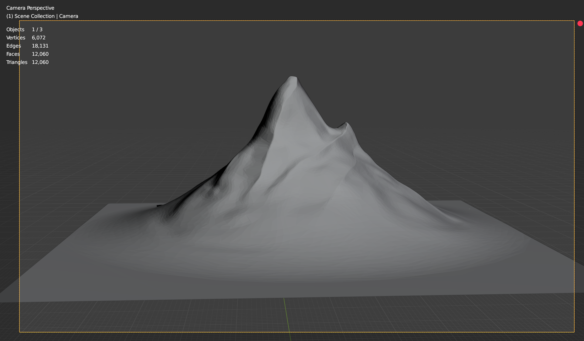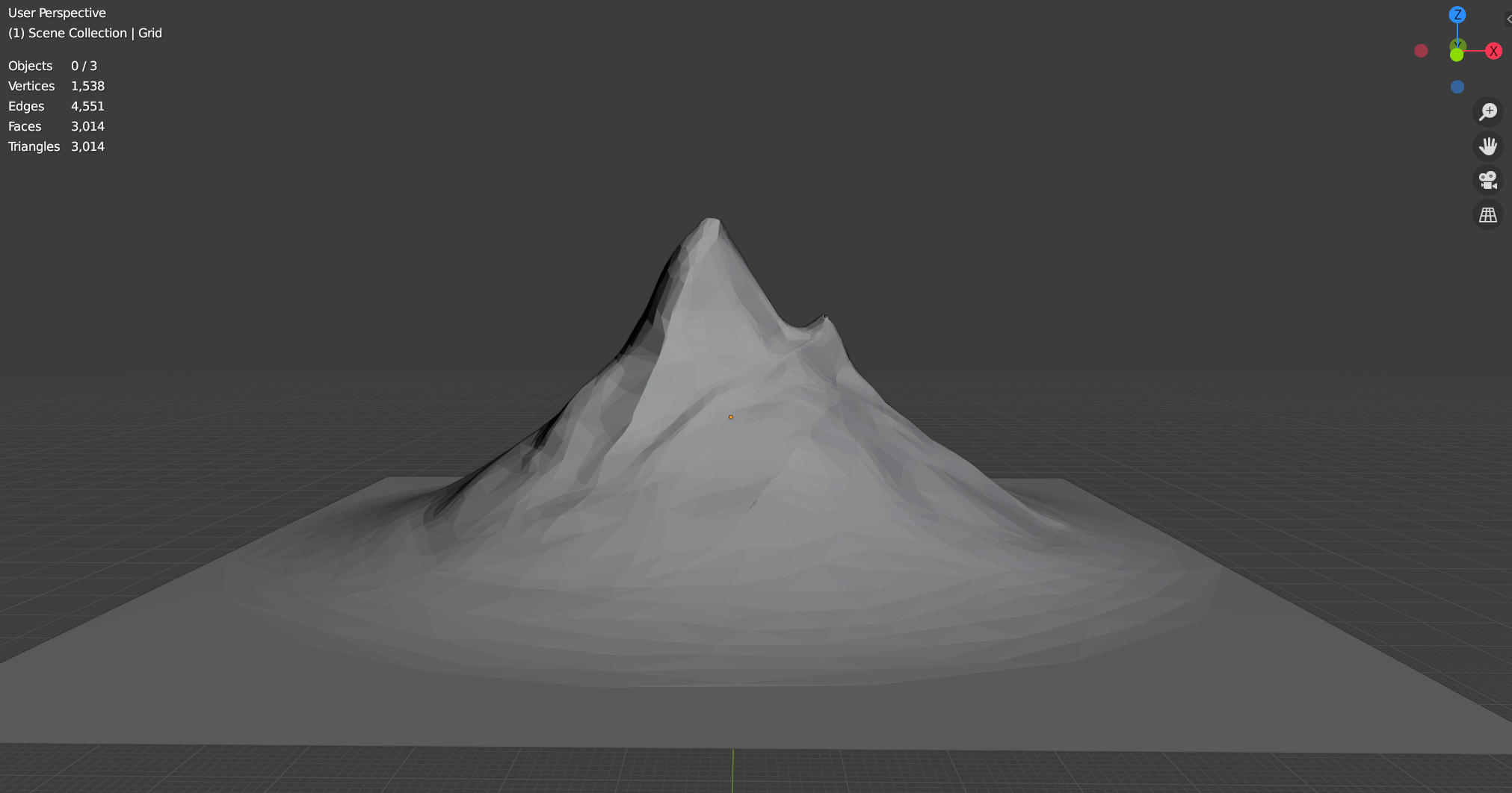 Massive reduction in number of verts. And maintained the ruggedness of the mountain look. can't wait to see this at the later stages with texture and shading applied. Nice work.