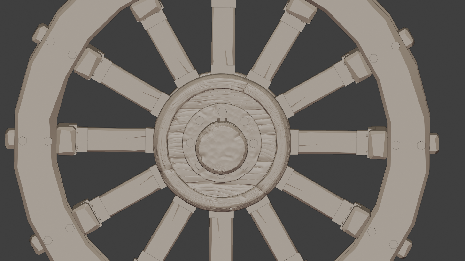 I agree with Carlos I think the detail is coming out really well. The spokes of the wheel seem noticeably repetitive, with the single wood grain coming out from the center. (but maybe you're not finished?)
