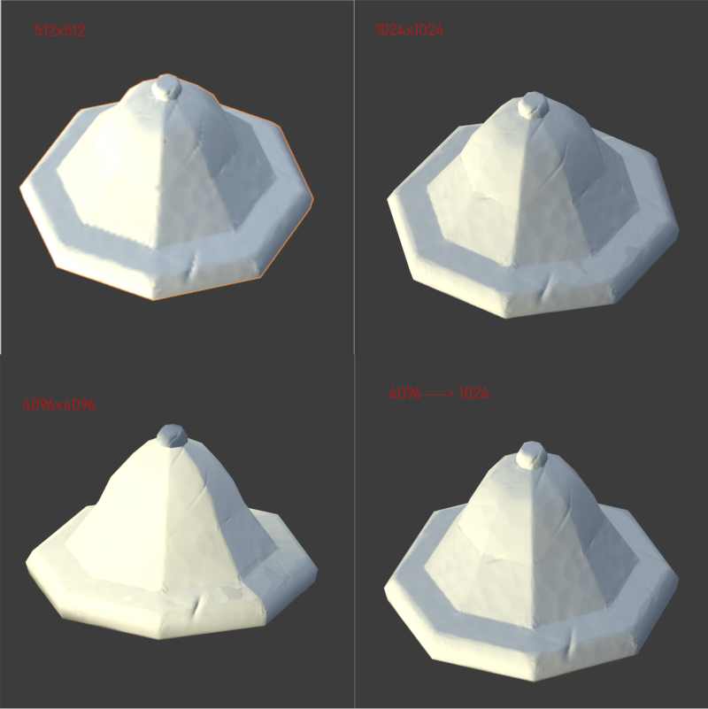 and some bake-tests: 512px / 1024px / 4096px / 4096px scaled down to 1024px with interpoloation none