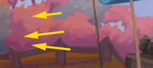 The Orange and Brown bushes are the Mid ground, and the greenie bluey color is the Background bushes or trees.