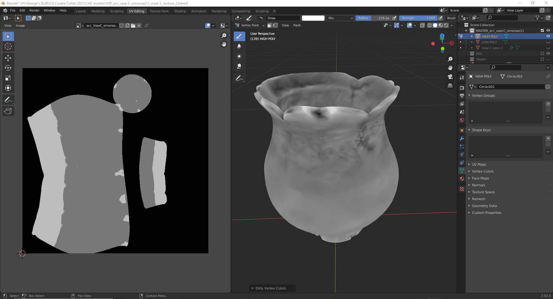 I have decided to re-do the vase C from scratch. I think some of the issues I got with the baking process was to do with the modelling.