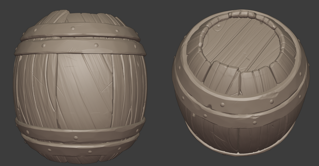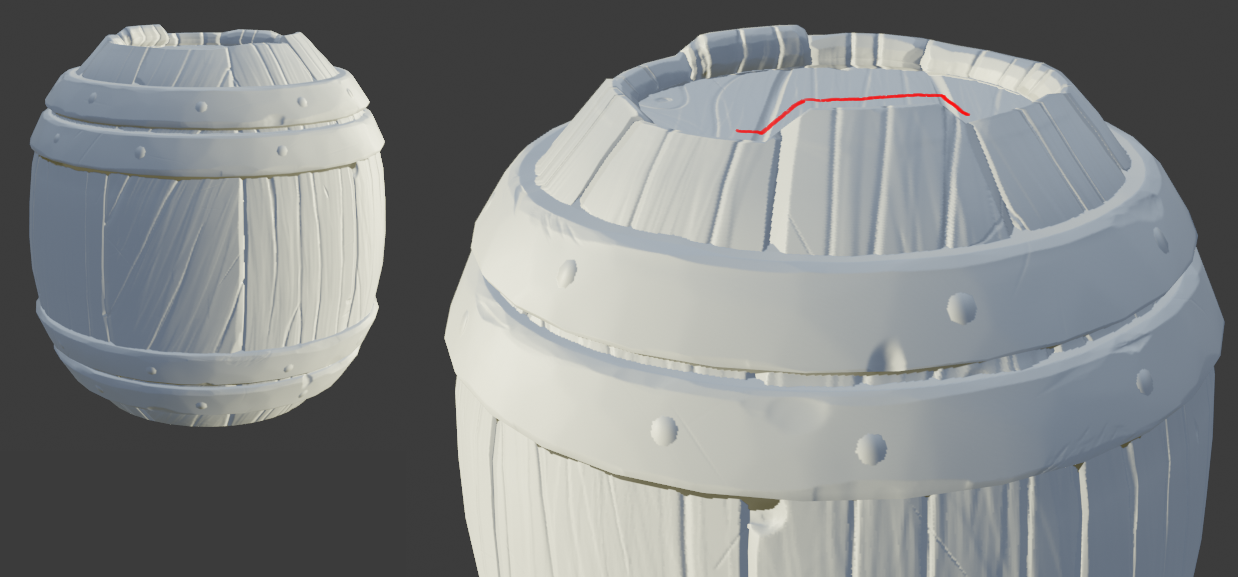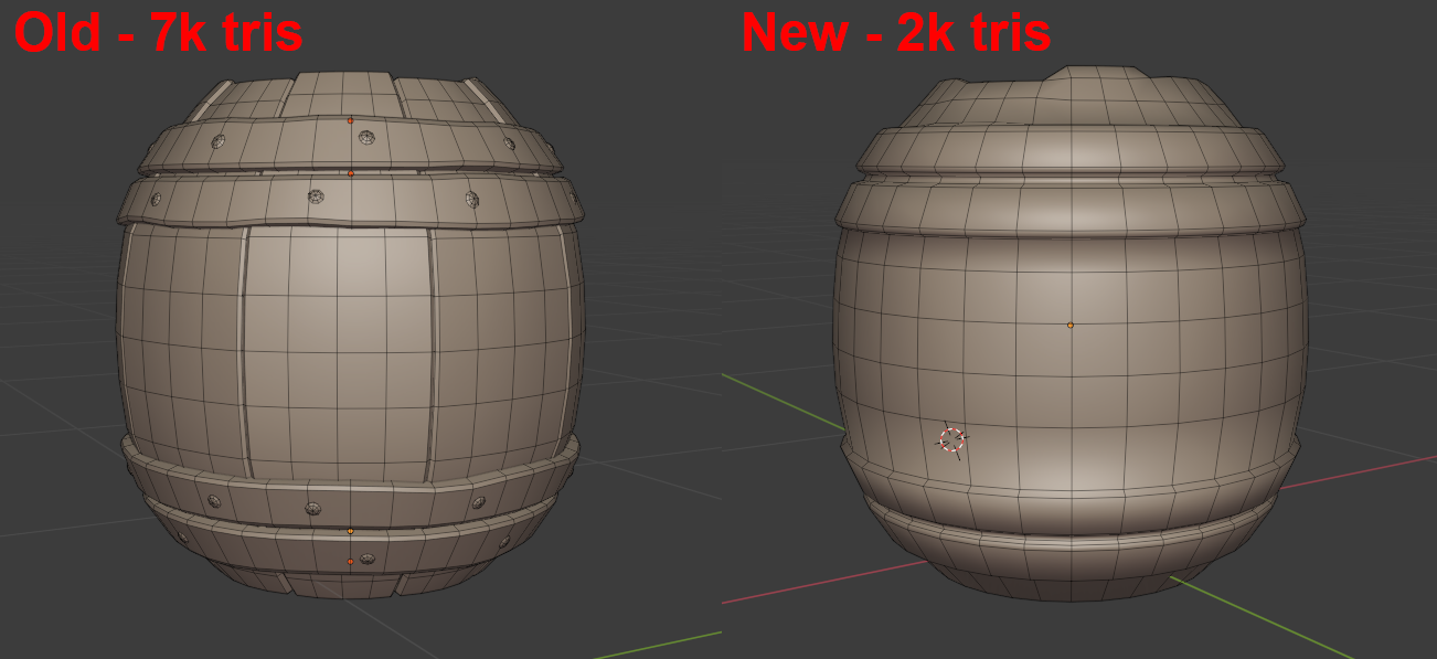 Then I made a new lowpoly because I felt like there was a lot of geometry that wasn't contributing to the silhouette and the detail could just be baked down like the cracks inbetween planks or the rivets.