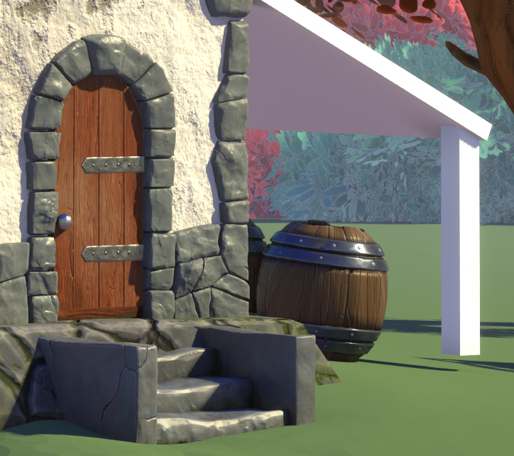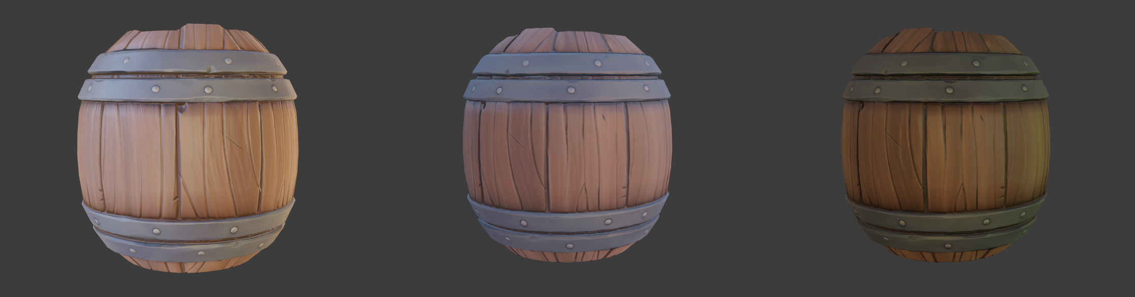 All combined (actually this also makes use of an AO map I baked because I felt it needed more shade in the shadows and didn't want to paint into the color map to allow for more flexibility to tweak in the material)