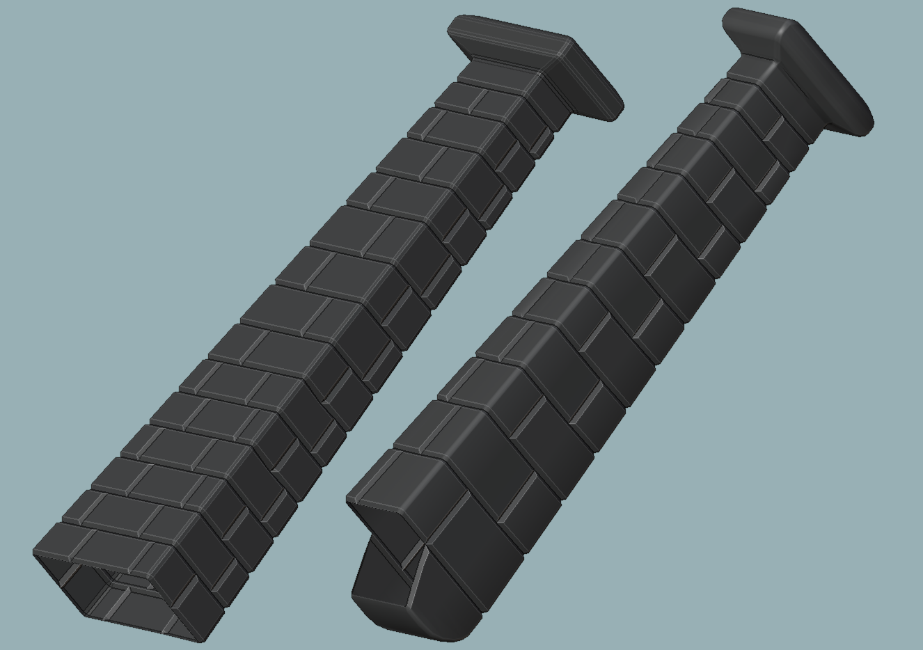 harbinger_ua artwork. I'll try to add some more damage but this will make some changes in the low-poly mesh necessary if it's deeper holes, especially those which affect the silhouette. It's tedious work because the number of stones rises with the widenening towards the bottom so that I can't simply use a cuboid with lattice deformation. But I think that it will pay off in terms of realism. Today I had a lot of work with smoothing edges: