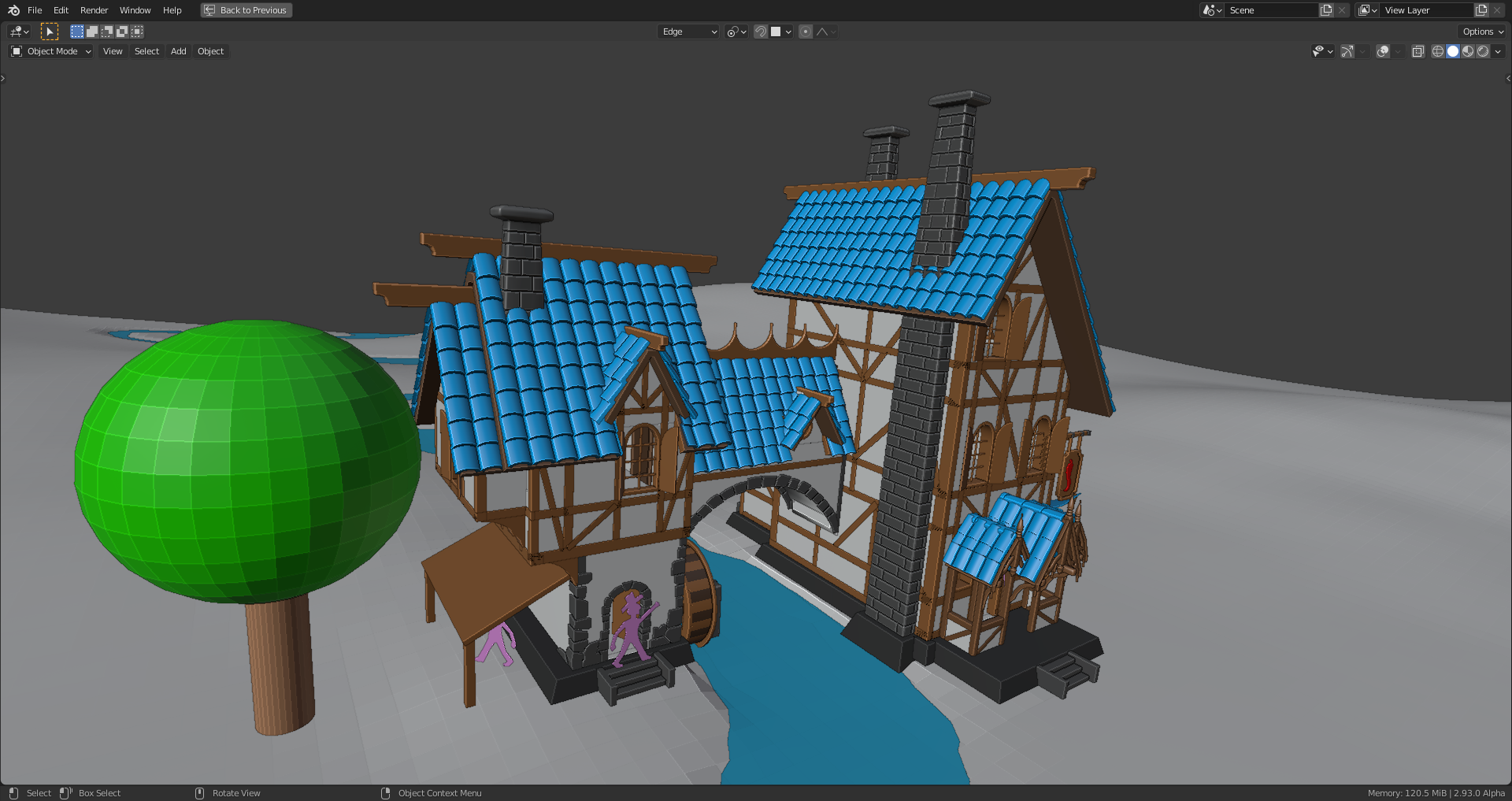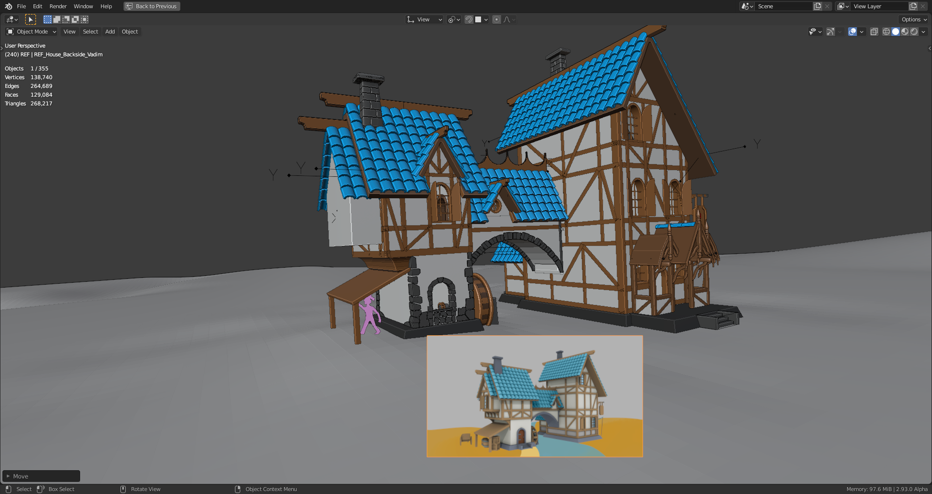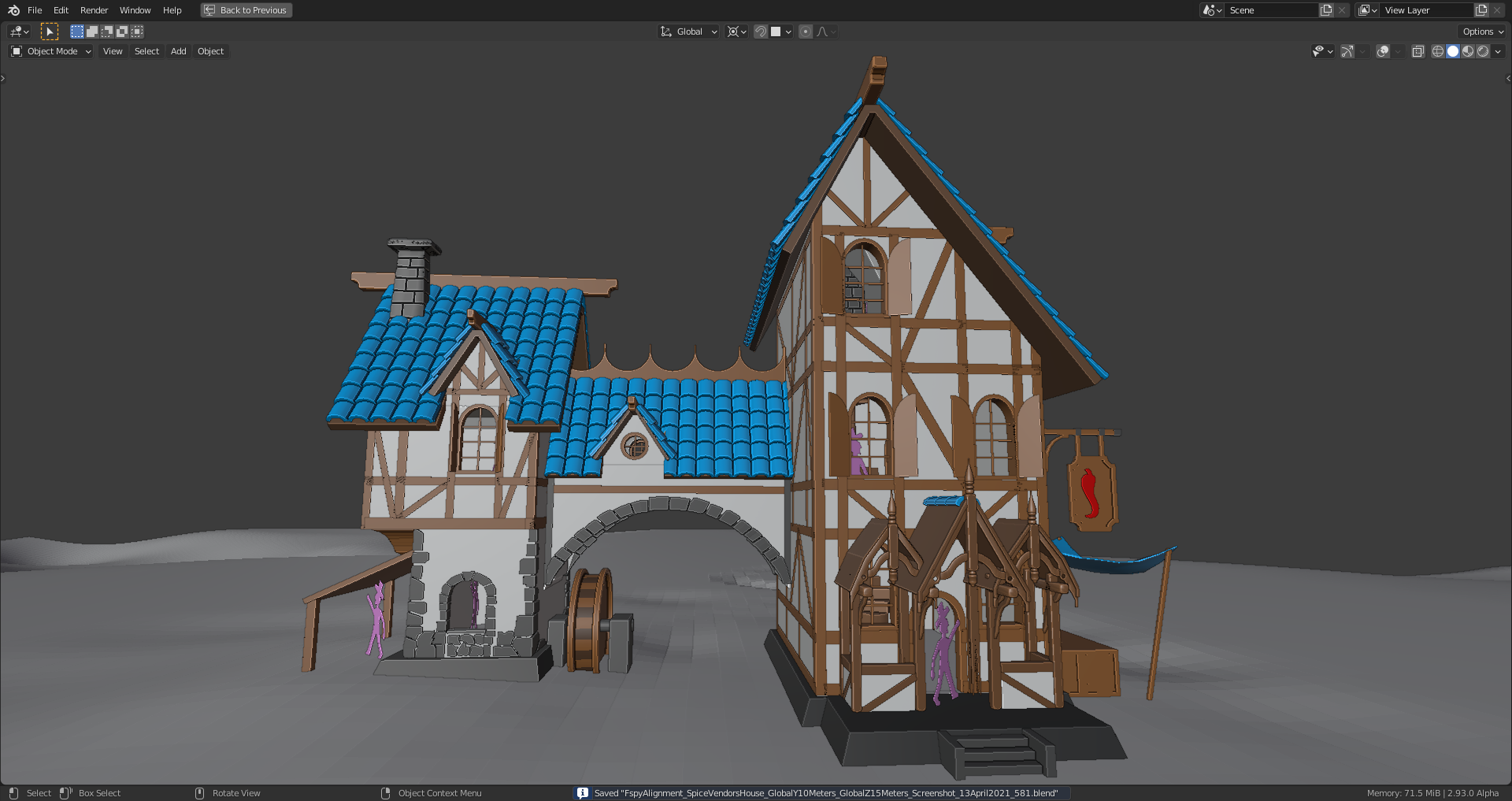Looks great so far! Also as I'm working on the interior, we might have to add one more chimney for the kitchen, which will be situated on the short side of the residential part roof, so it doesn't get seen from the main camera angle. I guess I'll have to release an updated version of the back view, since there are some things I forgot to add in all the haste, and some things need to be changed with the interior development.