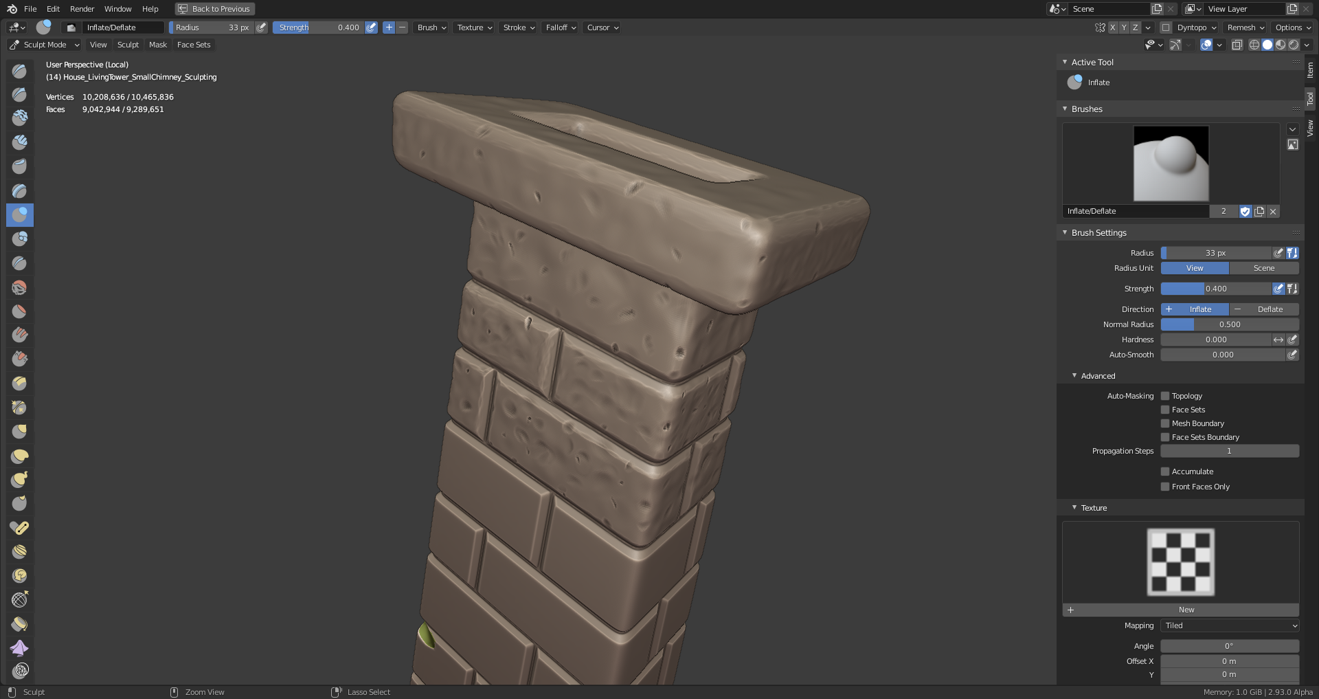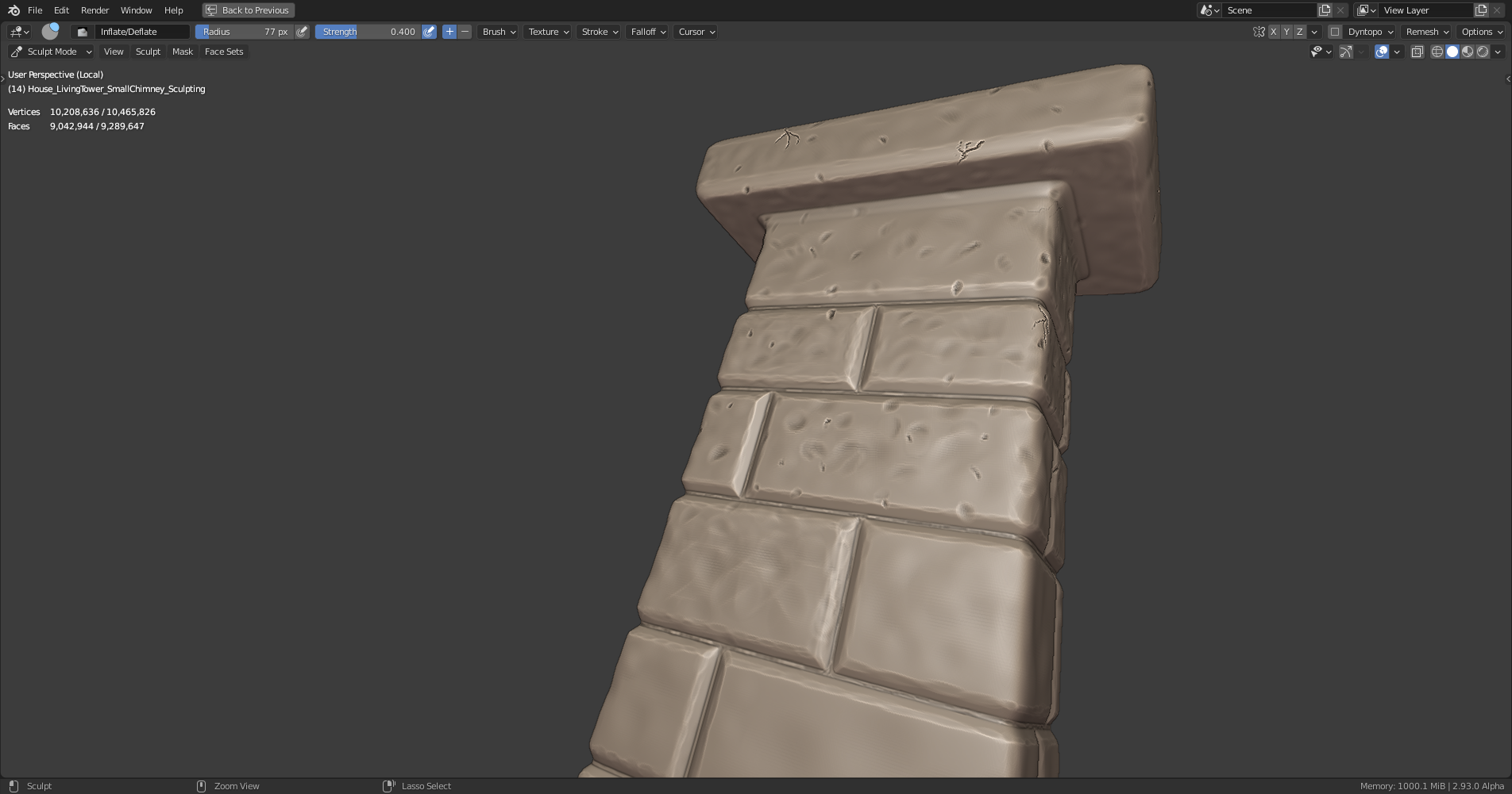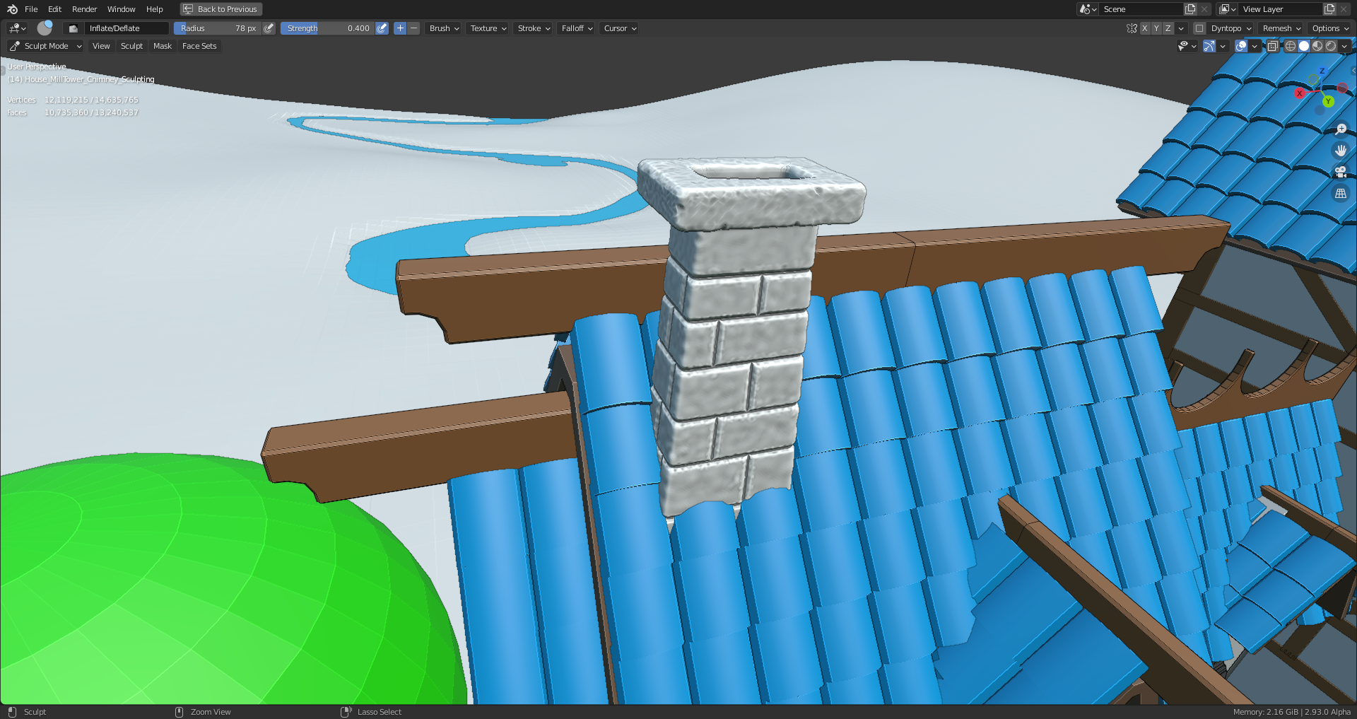 @theluthier The mill tower chimney sculpt is finished 😉 (I only did the part above the roof, the rest will follow in May when the house interior will be modeled):