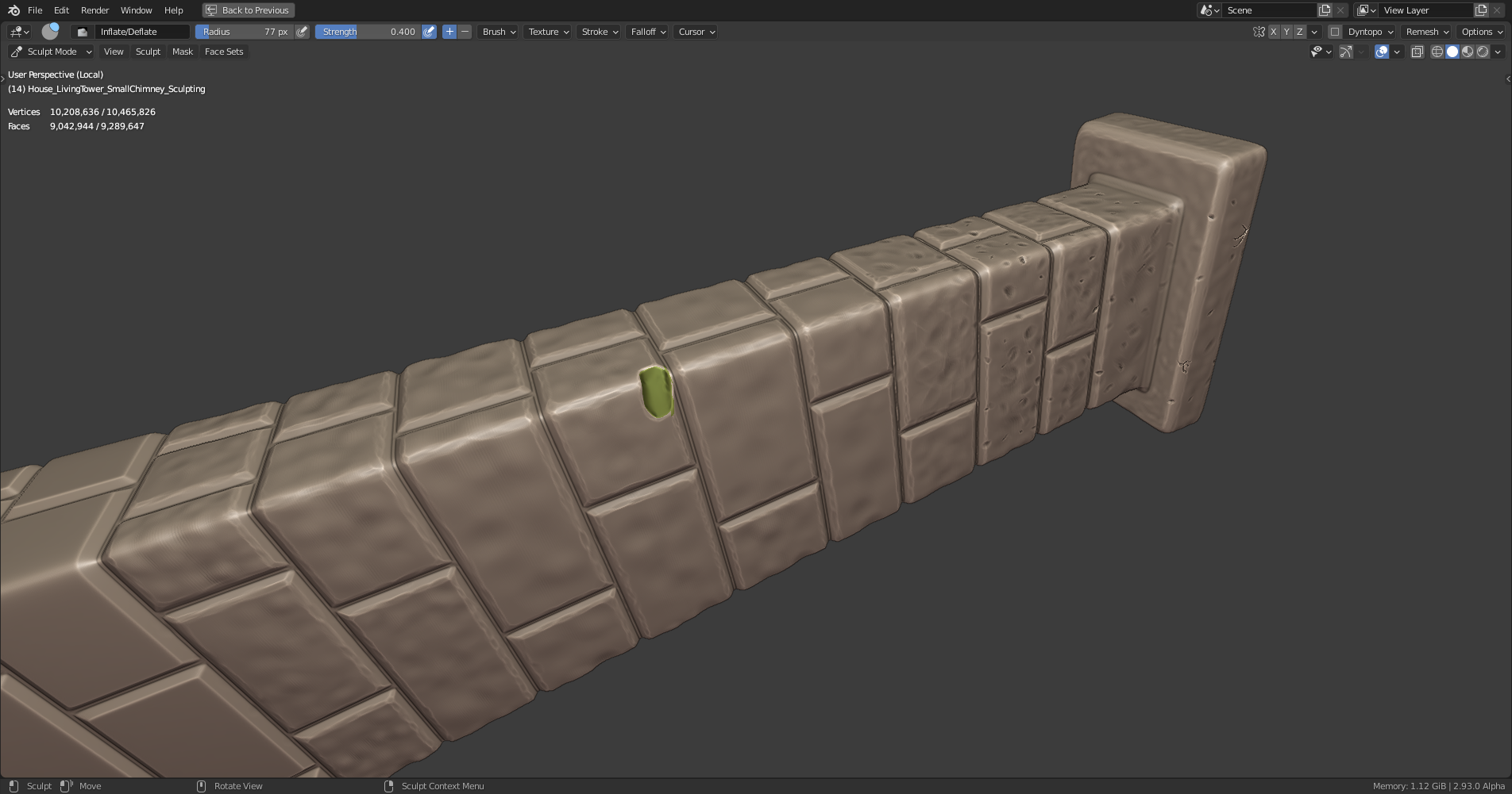 Sculpting of the left chimney finished for the part which is visible in Vadim's