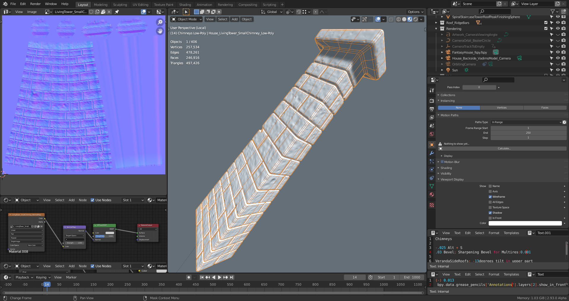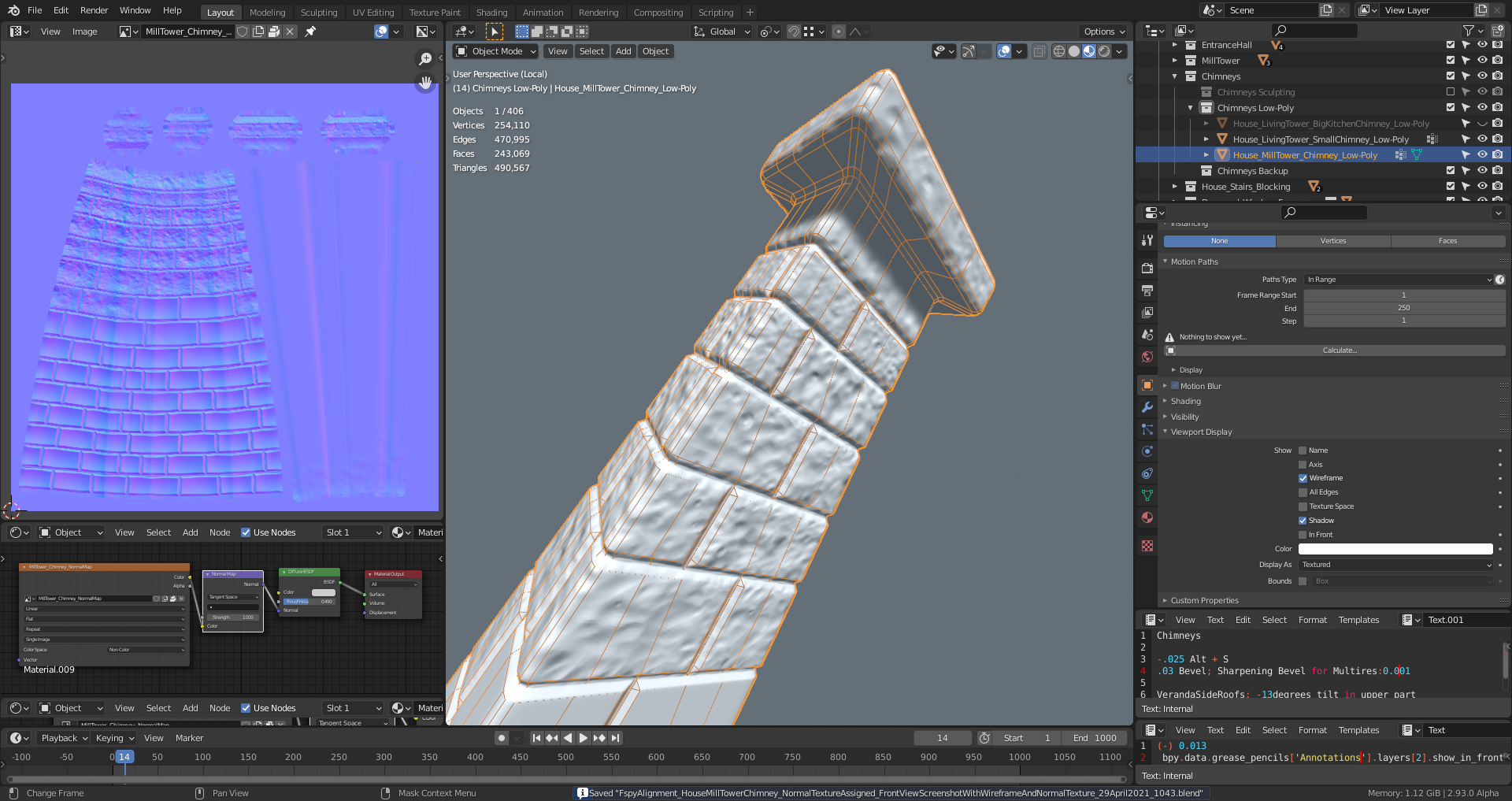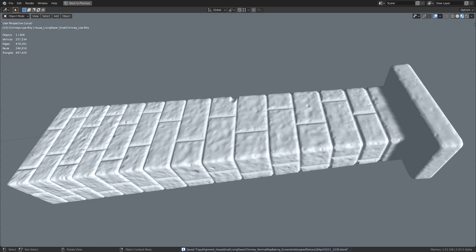 The "Normals Texture" assigned to the low-poly mesh of the "Living Tower's" (left house side) small chimney: