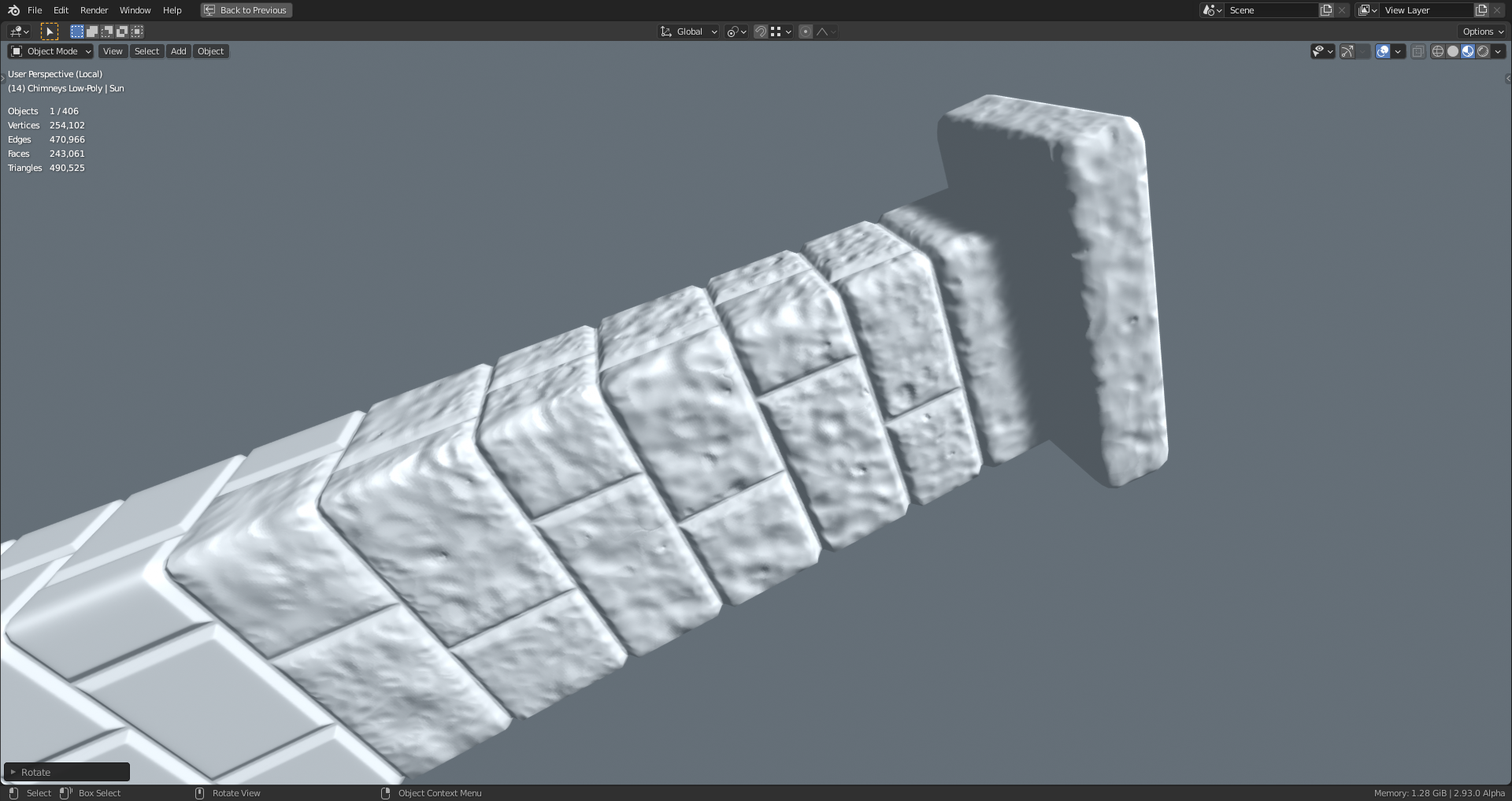 @theluthier That definitively helps 😀👍! I want to get that done quickly and start texturing the chimney. And after this, I'll make them smoke 😉😁! Thank you for showing the "Edit Mode" view as well since I had a problem with pinching at some stone corner. You obviously avoid this by making the sharpening bevel (serving as holding edges for the later Catmull Clark subdivision with the "Multires Modifier") running through the mortar joints. When it comes to the finer stone structure (like e. g. sandstone, tuff or pumice), I experienced that I needed a more even and therefore more dense manual subdivision because the stone pattern looks like an array of horizontally orientated rectangles which causes an ugly stretching with small detail brush textures. So, do I see it right that I just texture paint this graininess and only bake normal textures for the bigger details like e. g. cracks?