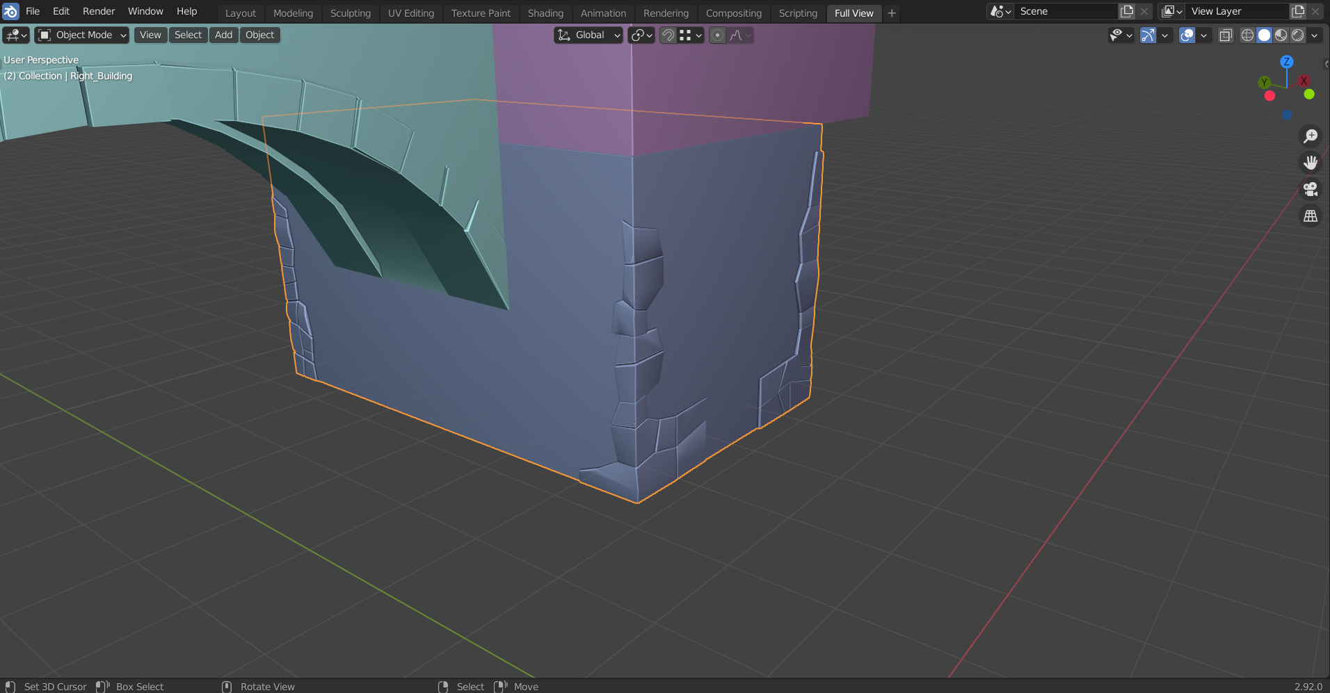 Here is my progress for the first week! I started right away with the knife tool imitating the cuts the stones had in the reference image. I then extruded along the face normals and used the bevel tool to make the crevices and cuts between the stones. I then changed the volume of the rocks by moving the vertices of each stone. I tried to make the base more bulky since, well, it's the base supporting all the structure! I also added some cuts here and there again with the knife tool(top, front left corner). The next steps I want to take is adding more wear and team and make the corners of each stone more sharp. I also agree with what
