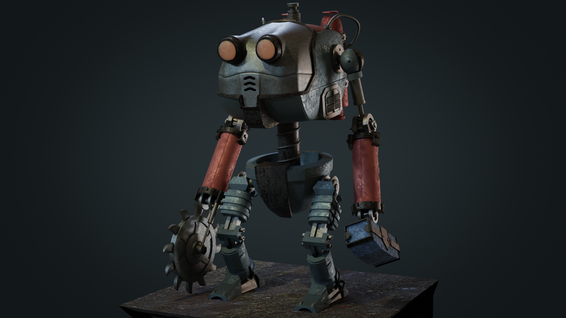 I really like the steampunk aesthetic, and seemed like a good modelling challenge. The main shapes are all complete now, and I need to do a little amount of detailed / "roughing up" pieces, then really focus on the texturing and lighting, and try to get it work in an interesting scene.