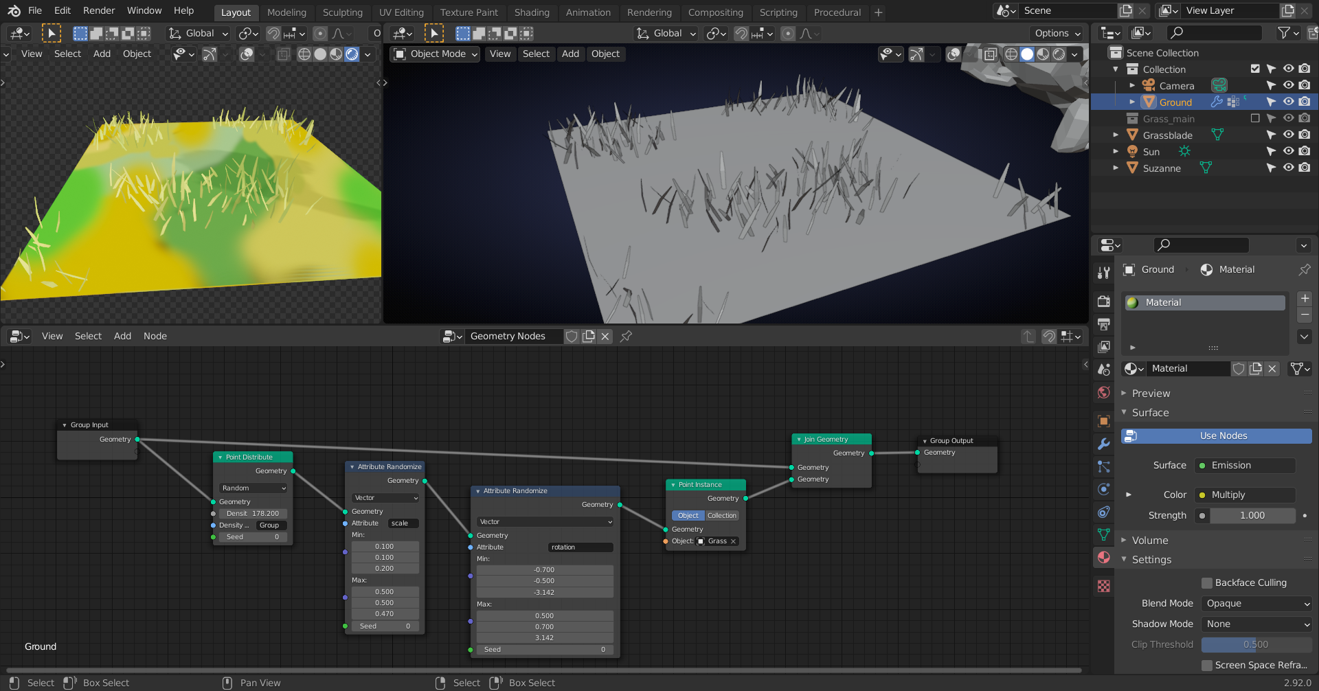 A bonus of fewer grass blades is being optimized for scene performance, of course. For week 2 I'd like to see you tackle a larger area, like a field-size test.