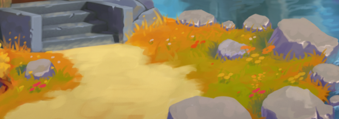 I agree that I was a bit too overenthusiastic at first though with how dense it could be. We should definitely do strategically placed clumps on top of textured detail as most games do. The most prominent clumps can be manually placed mesh instances, with the rest scattered around. randomly. I do still believe, however, that we can use shorter particle grass in addition to that (also strategically placed, in the foreground only) to achieve a result that is way more fluffy and detailed than we could hope for without it.