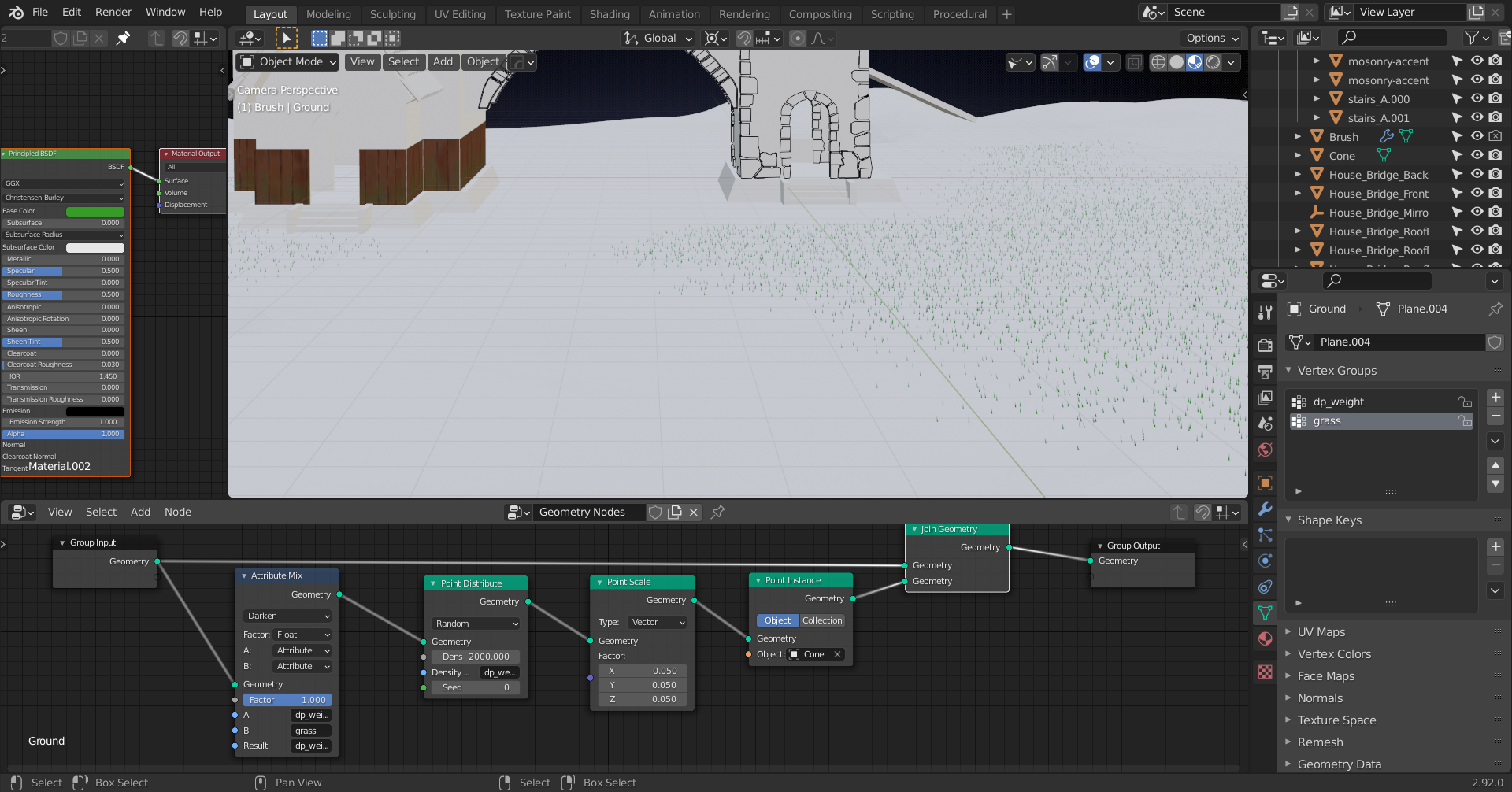The remaining grass is a hand-painted Vertex Weight Group.
