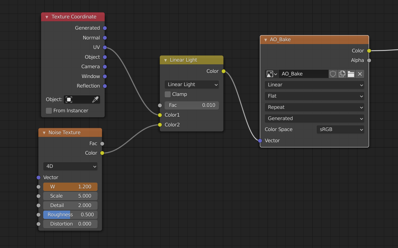 elcangrejo Are you asking how to bake the AO map?? Â In Properties panel go to Render Properties (the camera icon). You will have to switch the render engine to cycles. Â Go down to "Bake" and choose Ambient Occlusion for bake type. Â Once you have created a material for your object, create an image texture node, click new, choose your size (I did 2048 sq) and hit ok. Â Be sure this node is selected when you hit bake. Â There are some render settings you can optimize but it probably won't make a significant difference for such a simple object. Â Clicking bake will create the AO texture. And you can plug it into the node setup as above. Â As always the texture is only in RAM so closing blender will permanently delete unless you save it externally.