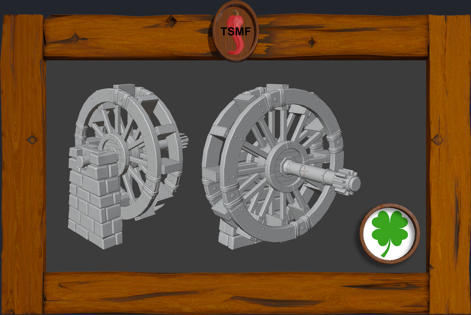 There were lots of discussions on this issue.  This is a stylized fantasy scene, does that give us license to run a creek uphill?  Can we break from the concept art and just raise the elevation of the back so that the creek flows from a higher elevation?  What about using a waterfall?  Or, a dam?  Can we have the water flow from the front of the house to the back?  In which case, we would deviate from the concept art in that the watermill would catch the water on the backside.  Each suggested idea had its drawbacks.