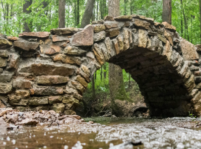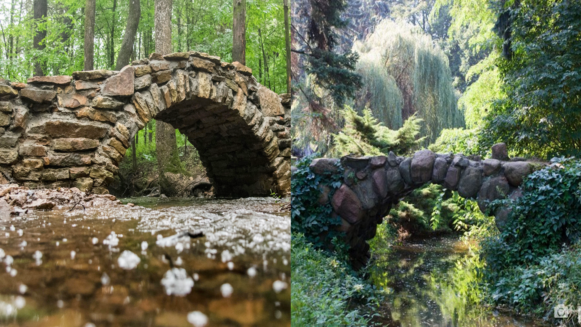 If you thicken the middle into more of an arch like the blockout I'm cool with either direction. Note that the second picture has a deeper ravine into the creek than our landscape. So the bridge is basically flat on top, connecting high terrain to high terrain where ours is curved on top.