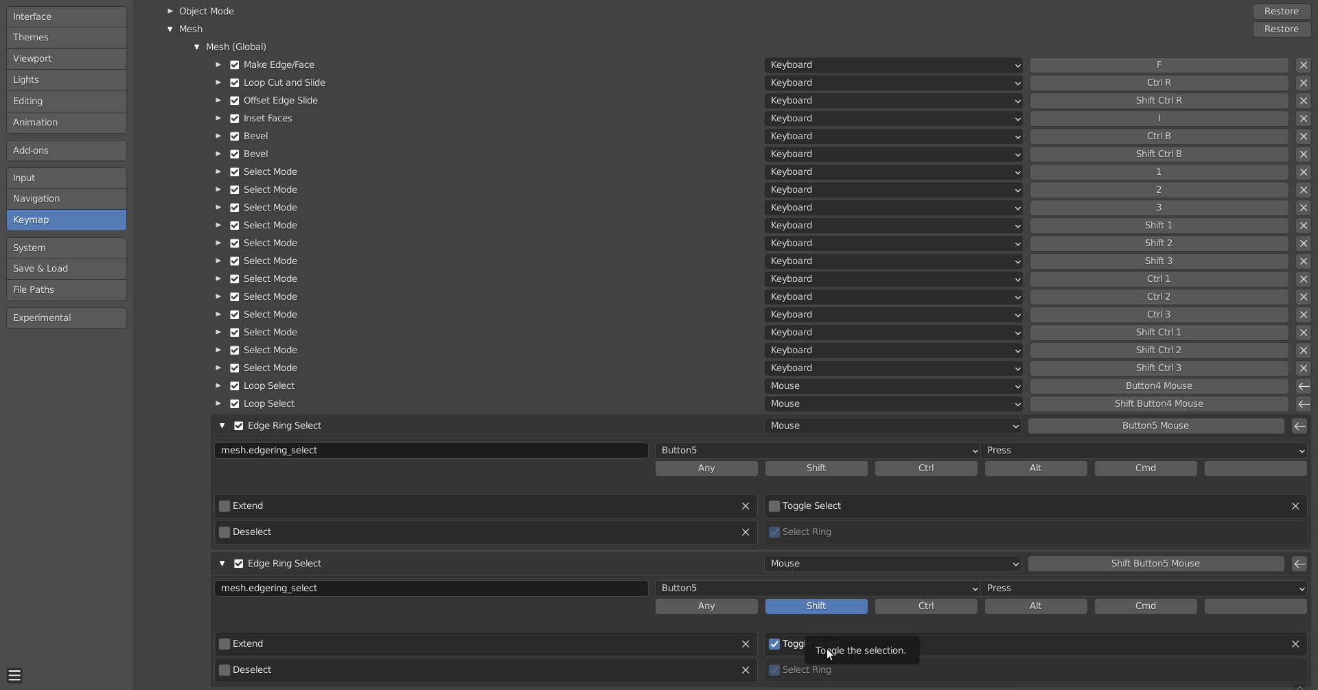 How can I deselect one of the edge ring while I have everything selected? Shift + Alt + Lclick would do it otherwise but with emulate 3 button mouse I can figure what would deselect edge ring here