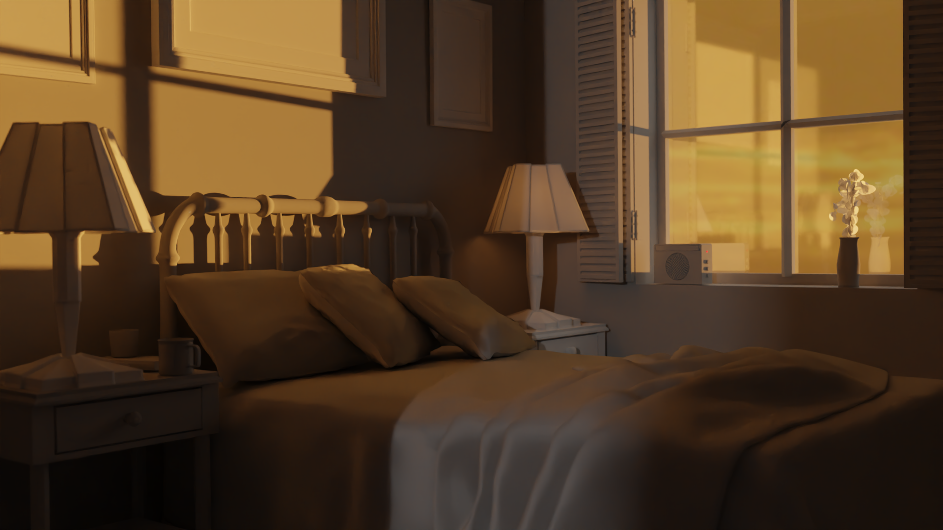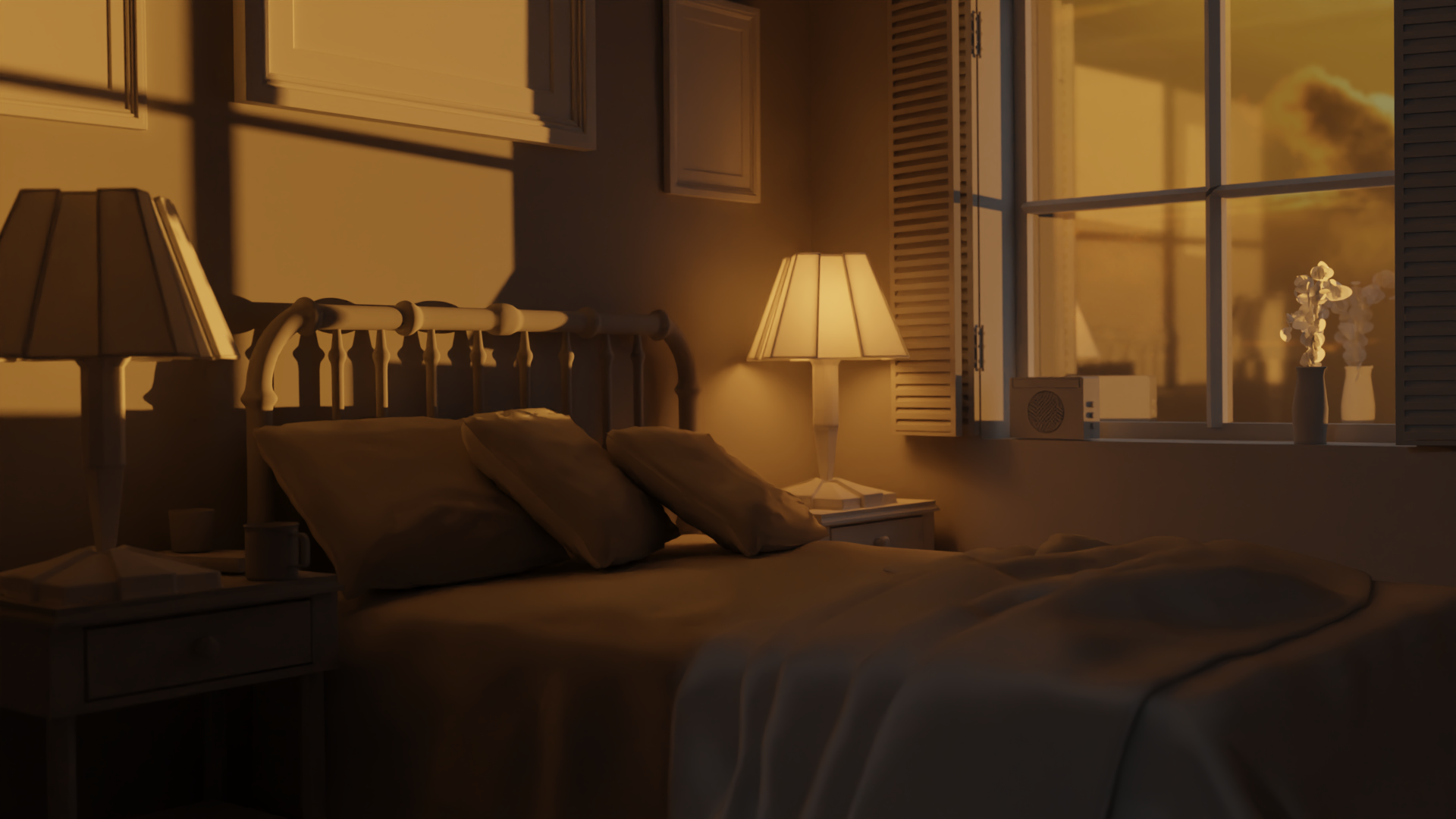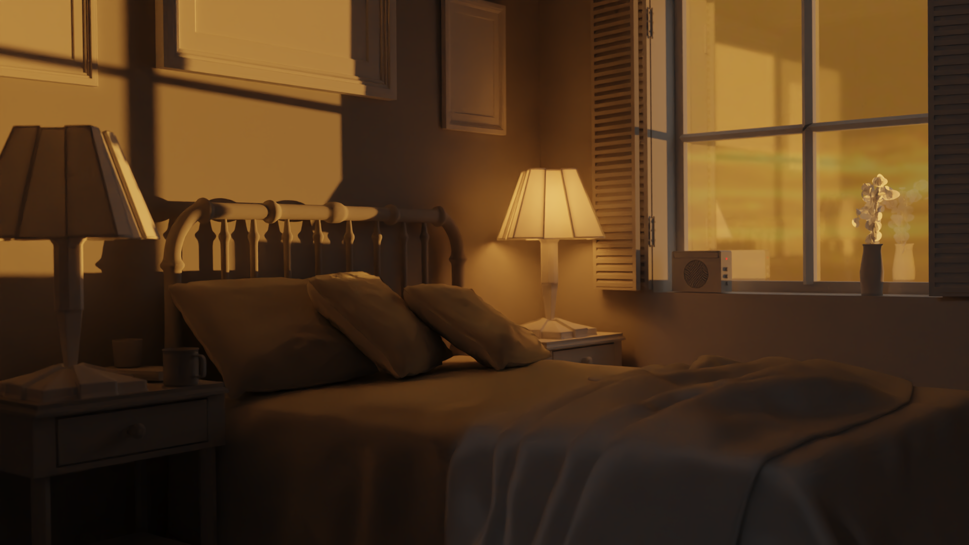 Chapter Lighting a bedroom with Blender; Trying to make the sunset while I'm brushing my teeth atmosphere.