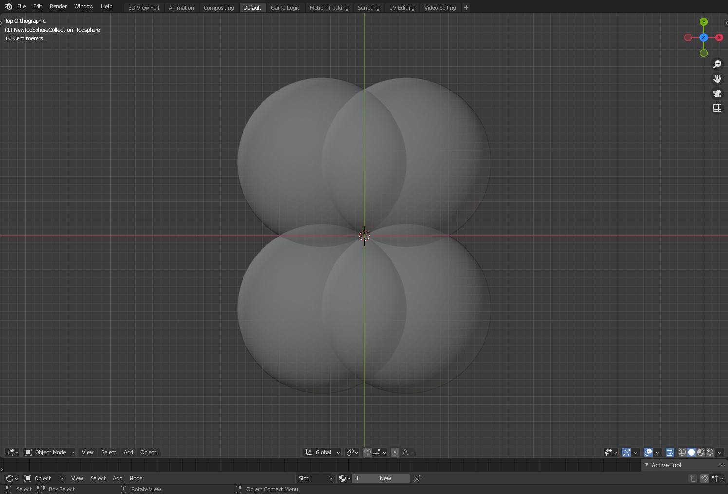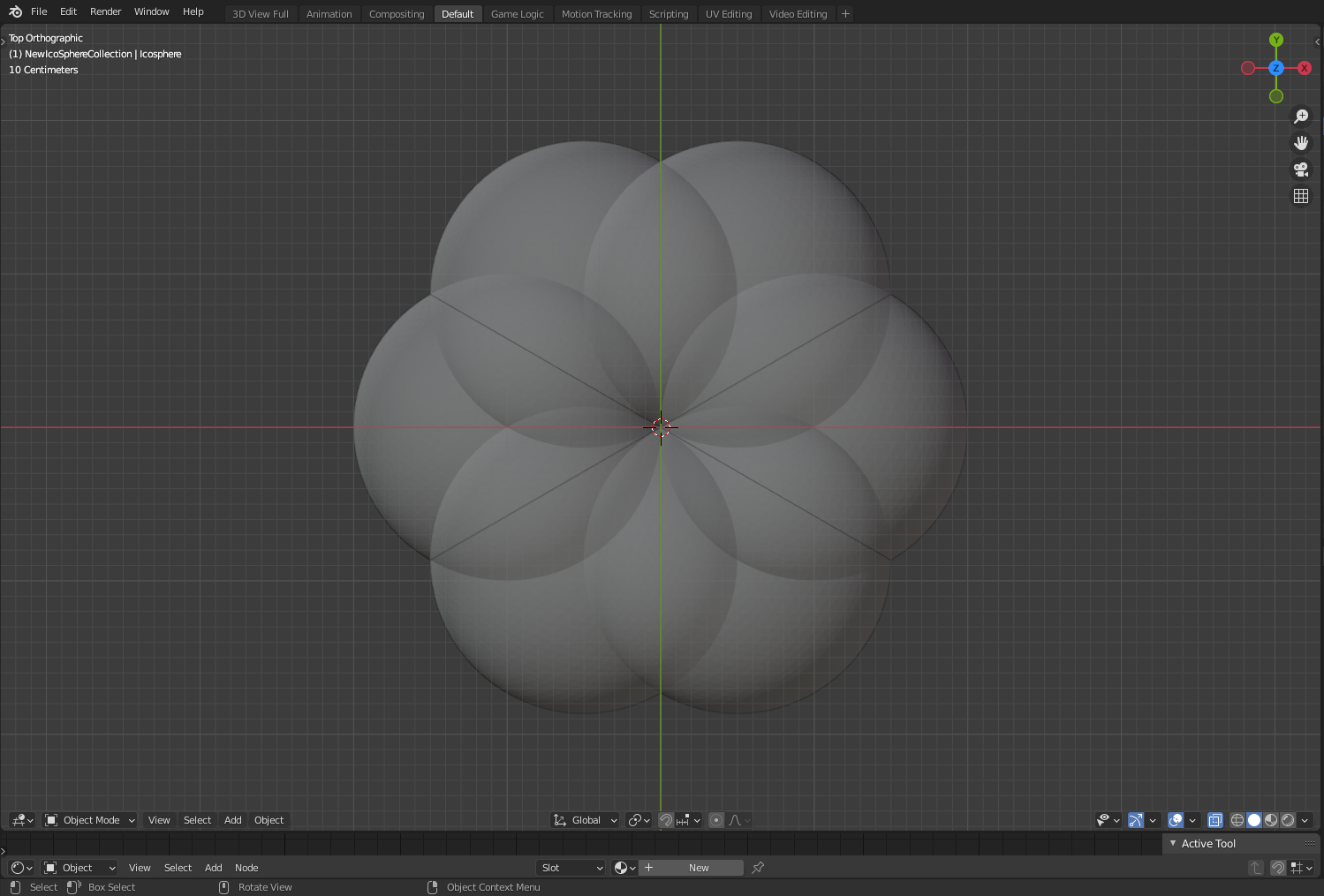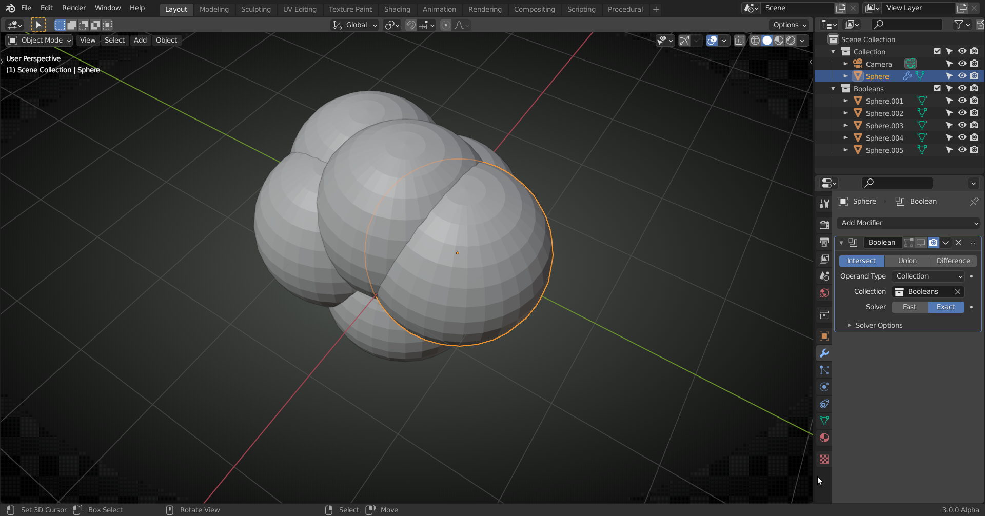 So, what does the intersection looks like? Here are 6 spheres. For easier 'cutting' I placed 5 of them in their own Collection.