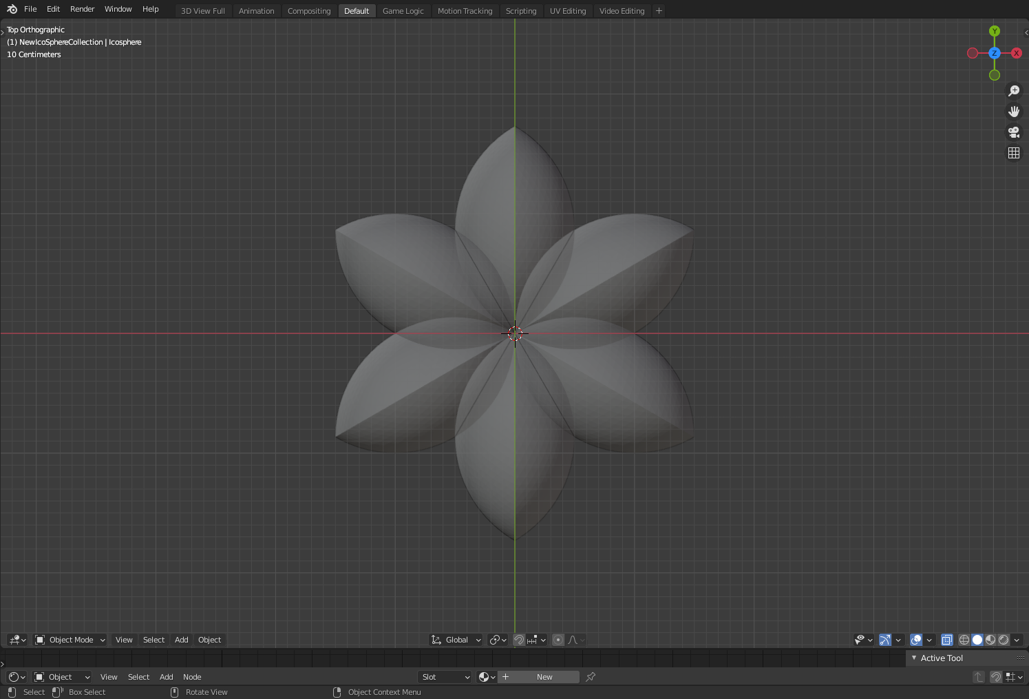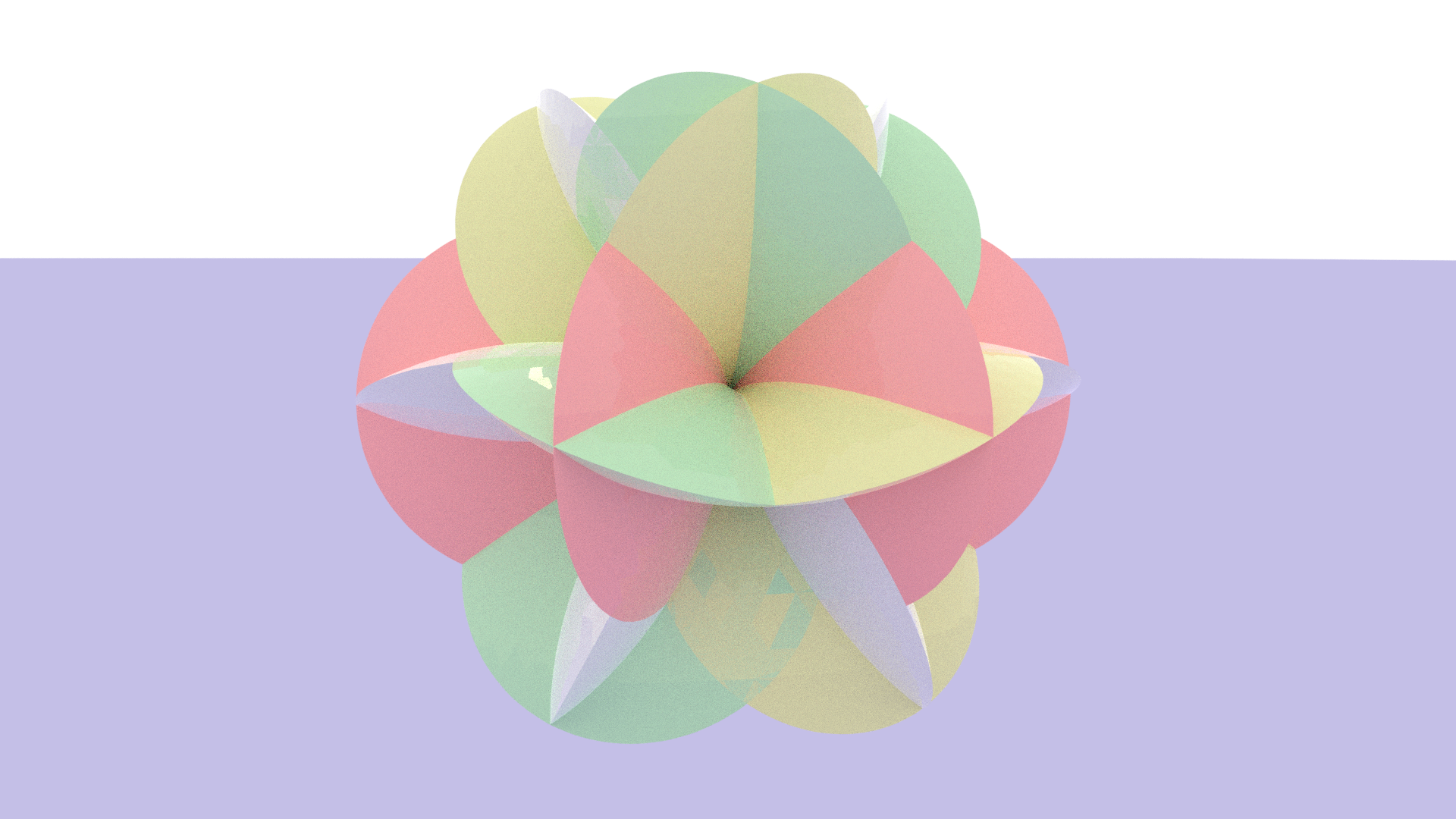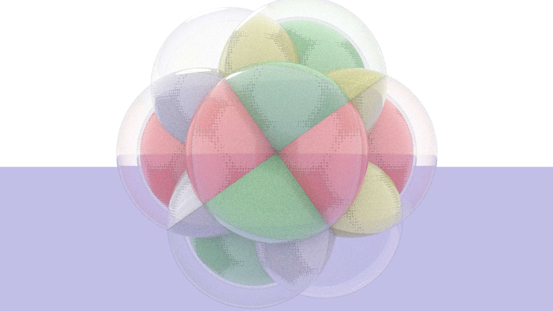 So, what does the intersection looks like? Here are 6 spheres. For easier 'cutting' I placed 5 of them in their own Collection.