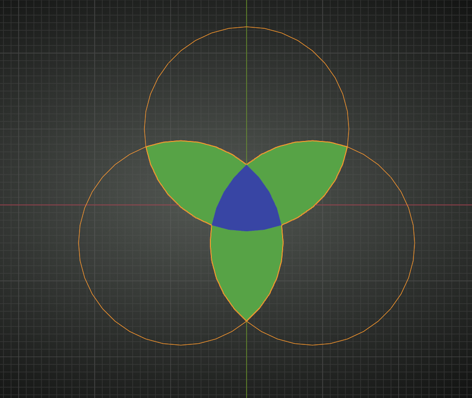 Let us consider a 2D scenario. Here we have 3 circles with their intersection in blue:
