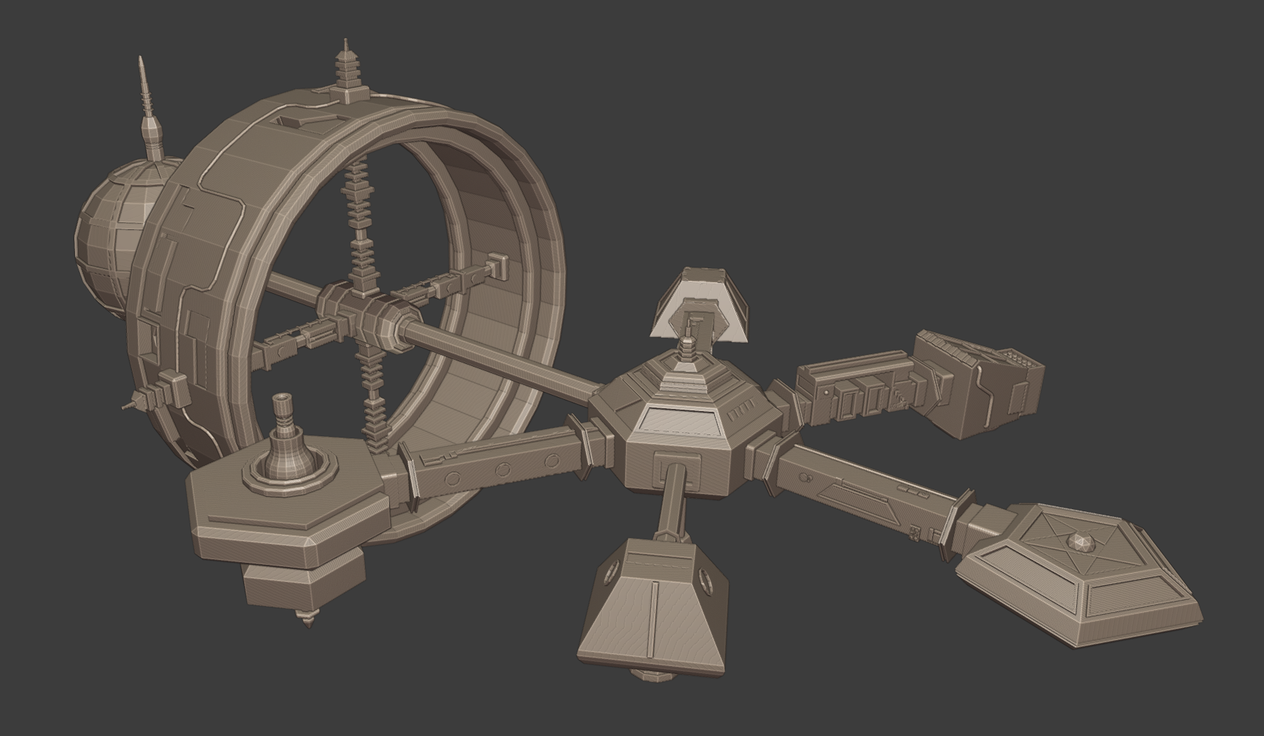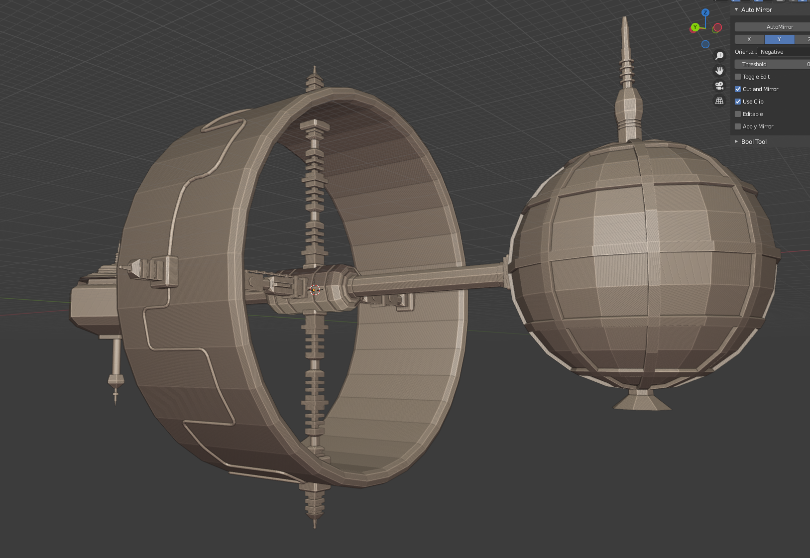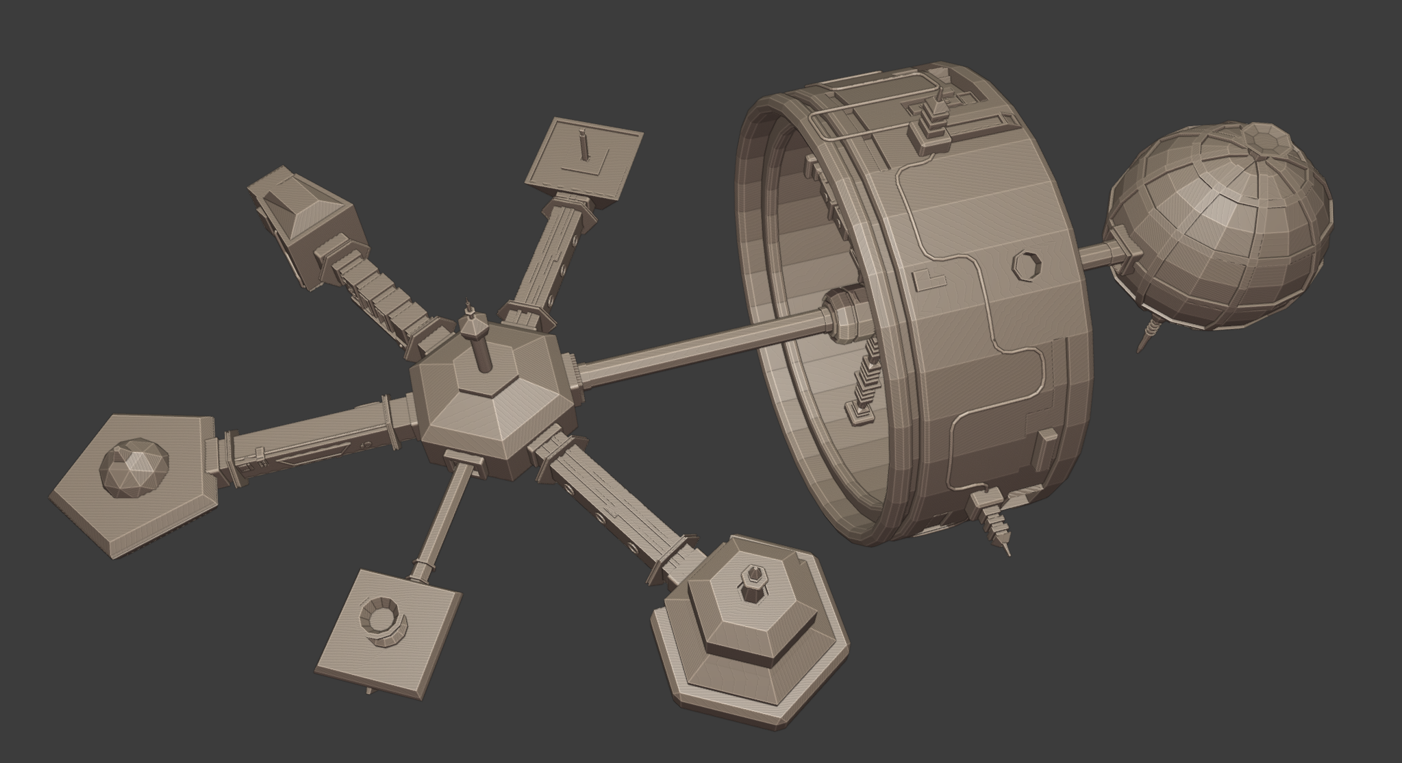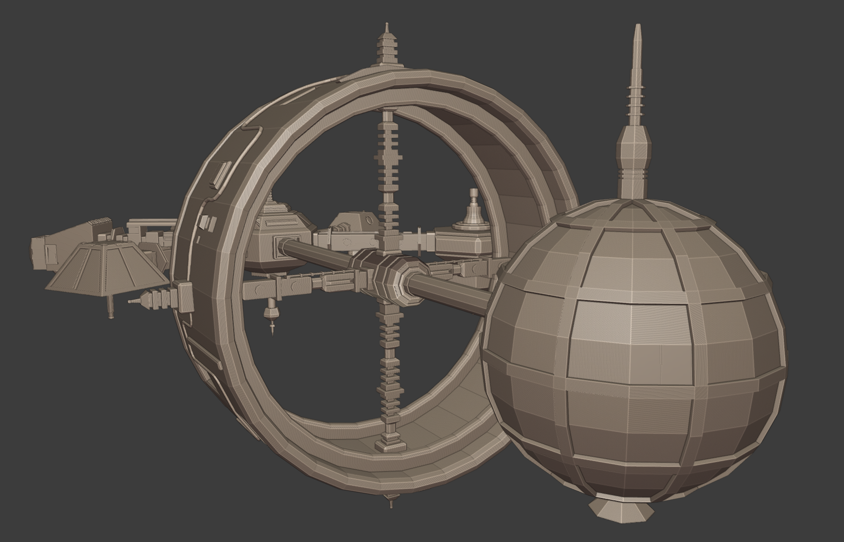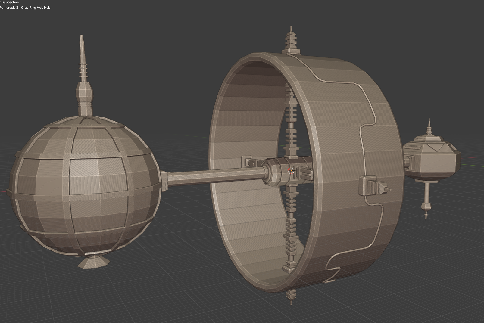 Completed the biosphere and started on the grav ring! The supports and axes are done, just need to add some details to the ring itself (have some piping there already, but need a bit more).
