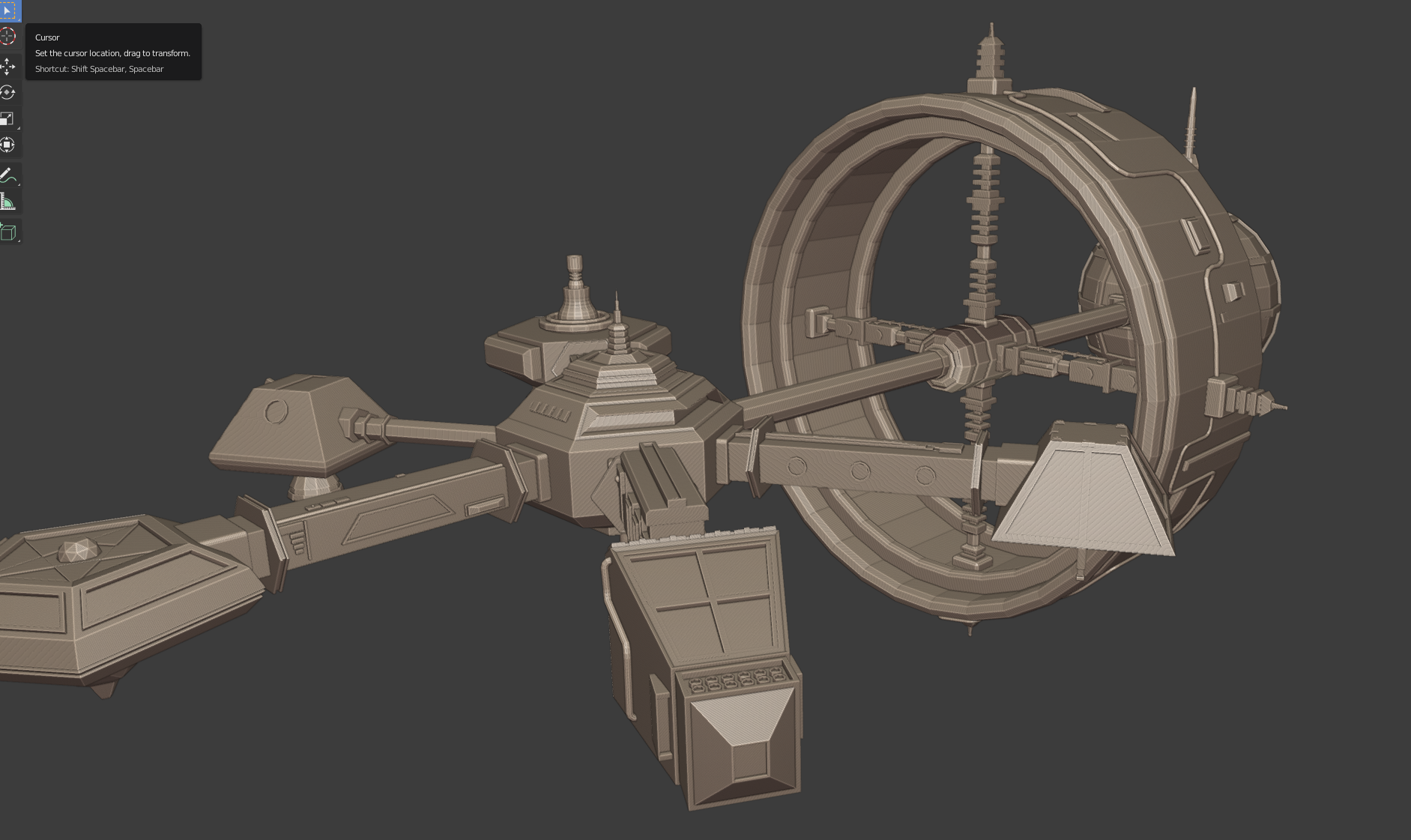 Just trying to sketch out the basic shape of my station for the challenge; will add more pods to the main structure beyond the ring, but wanted to get this started!