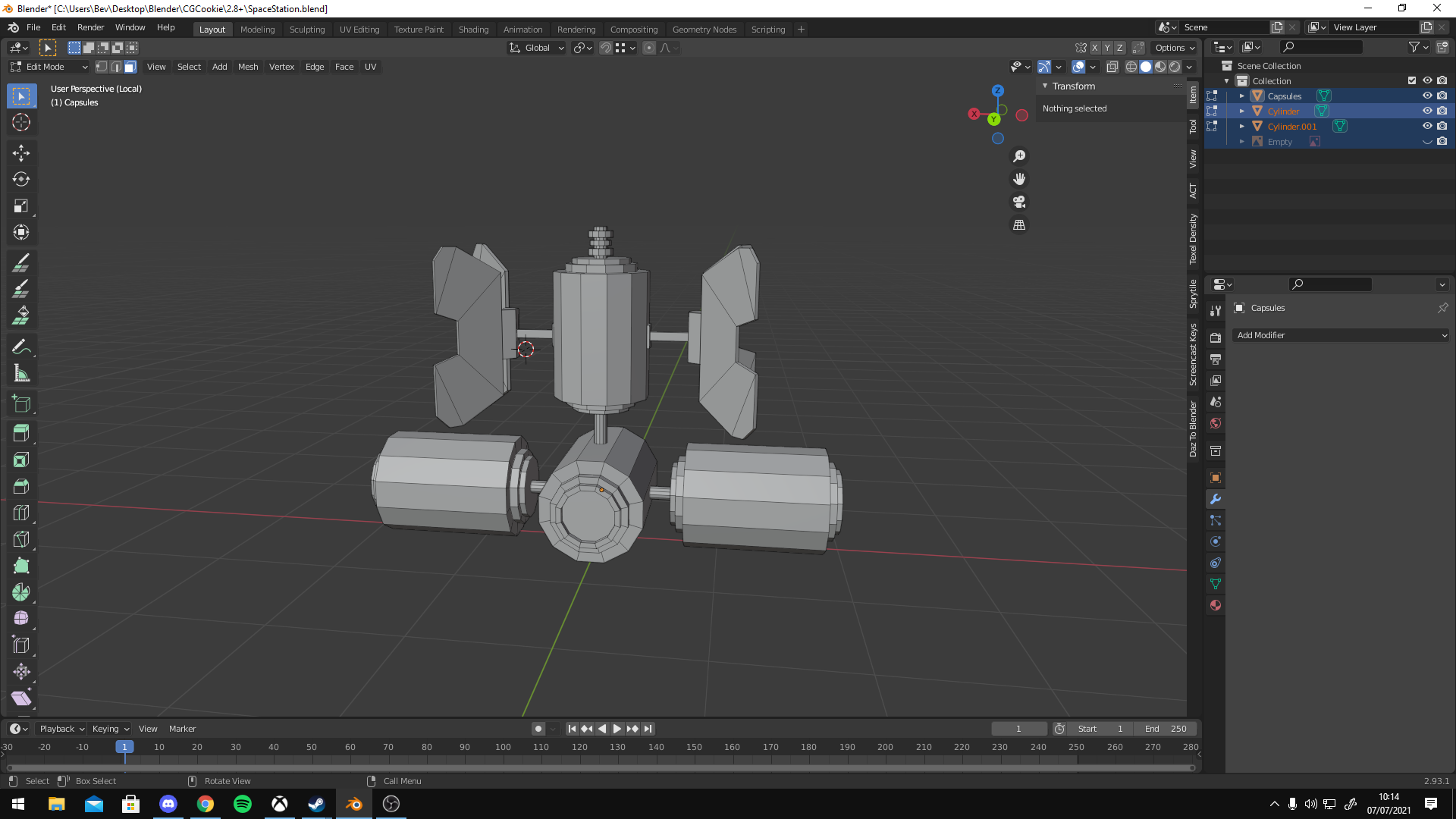 Little update model made, also a little video was kind enough to encode it so you didn't have to hear my heavy metal blaring in the background https://youtu.be/j9mOgc_SJrM basically duplicated the cylinders, had problems with the rotation on the solar panels but sorted that out and yes I decide to go with the other one just because I'm indecisive.