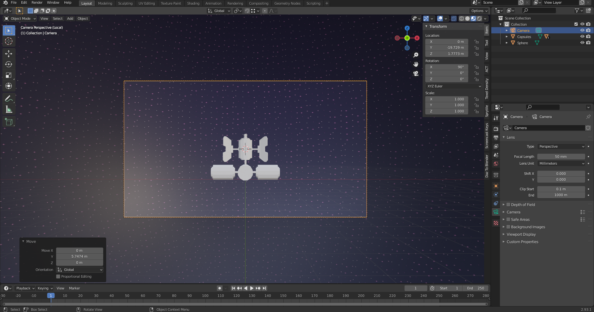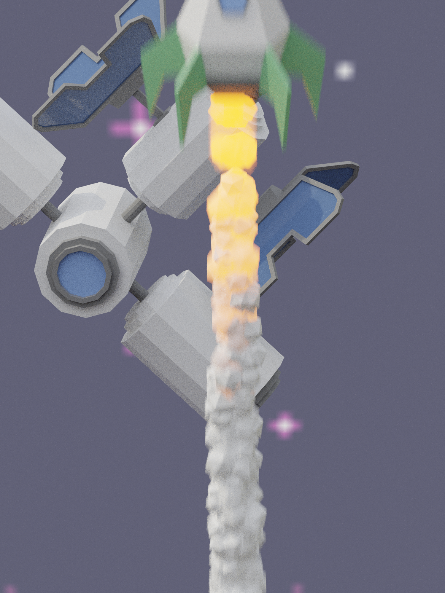 I think so too. I've inset, extruded and scaled on the normals for the solar panels and parented everything to the cylinder with the solar panels (keep wanting to write sonar lol, I need morning coffee) so that everything moves/ rotates as one obj. I guess it's just adding colour, rocket and making the scene.