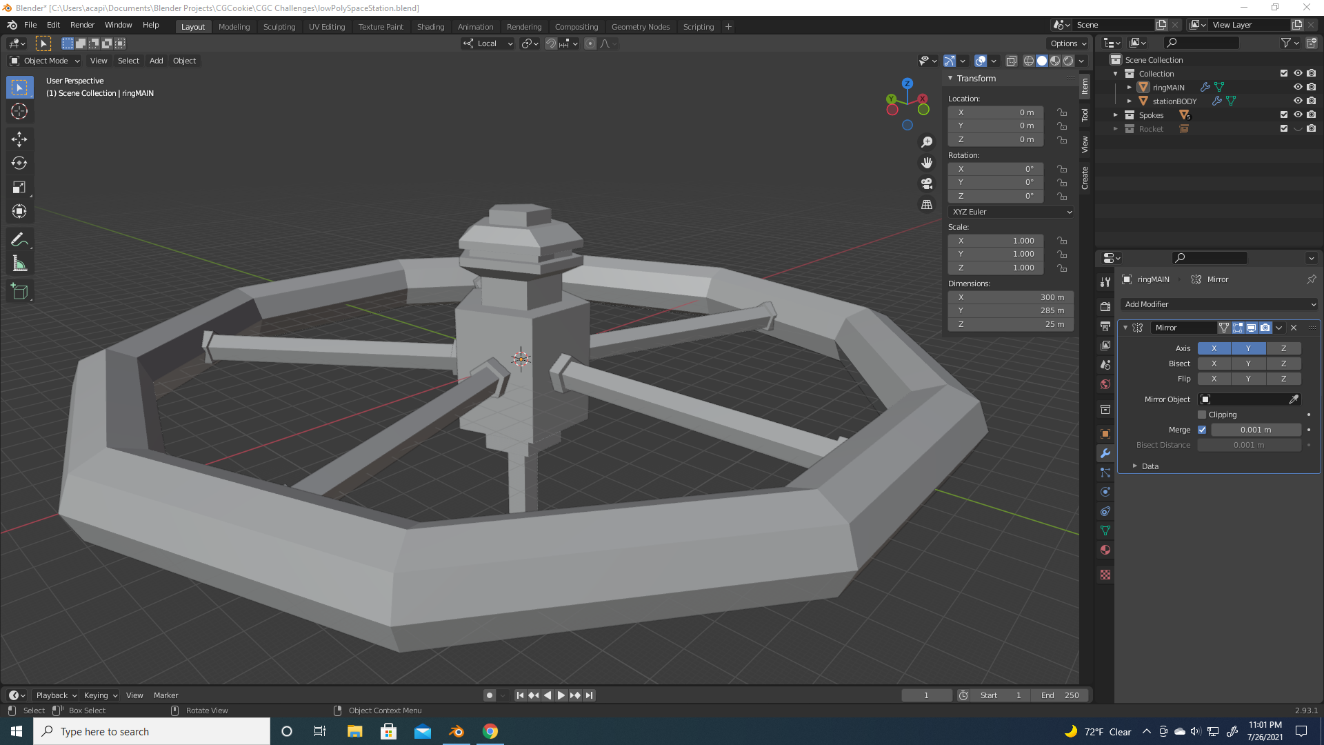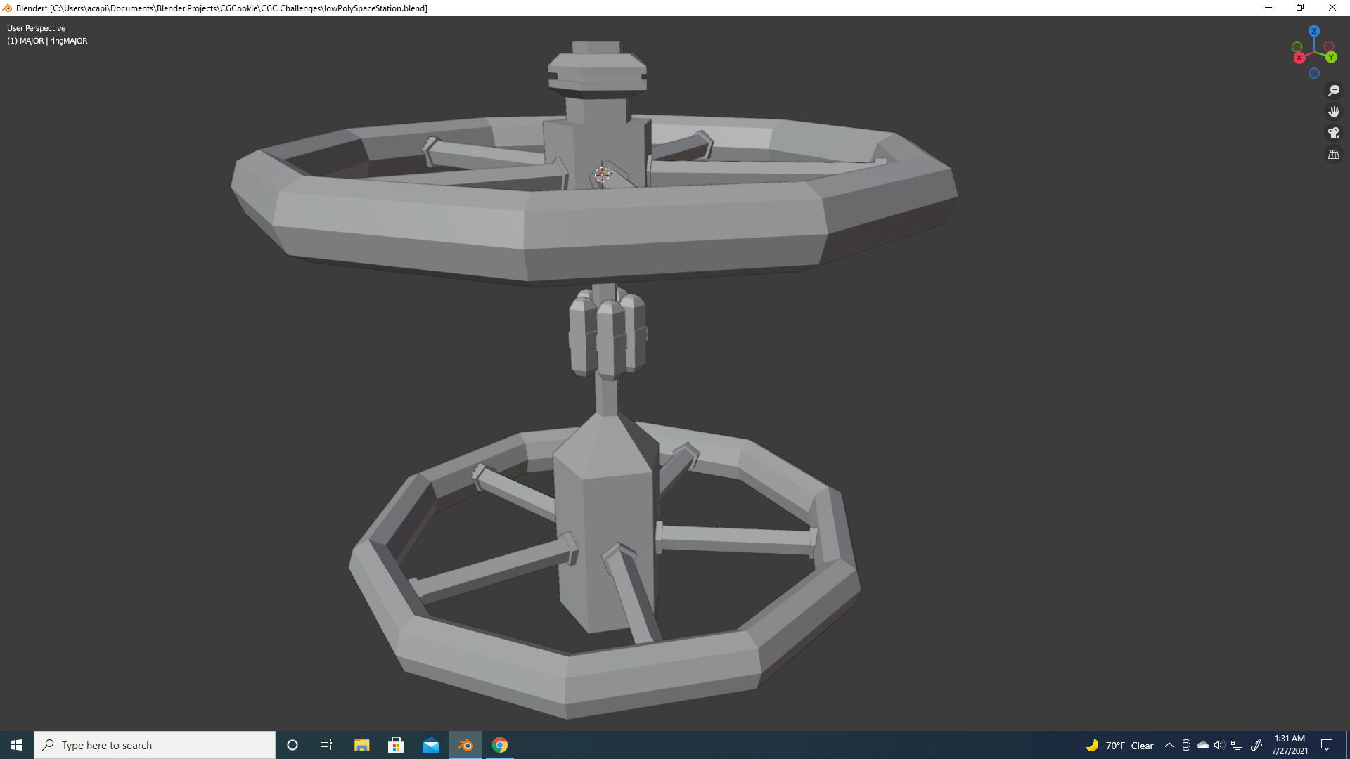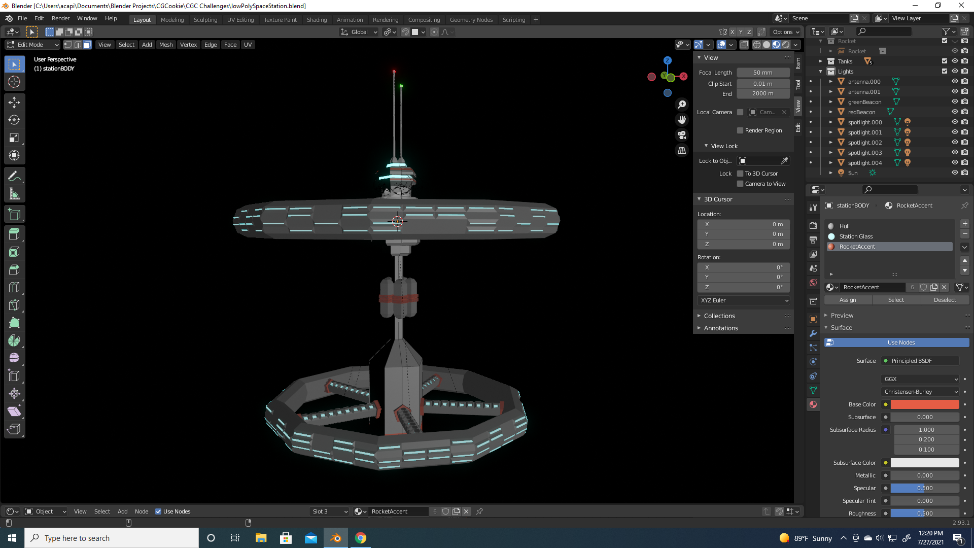 I feel a little late to the party, but here we go! There's not really too much to say at this point except that the biggest challenge has been remembering to keep things simple and low-poly, so I settled on a design that keeps the pentagonal element of the low-poly rocket.